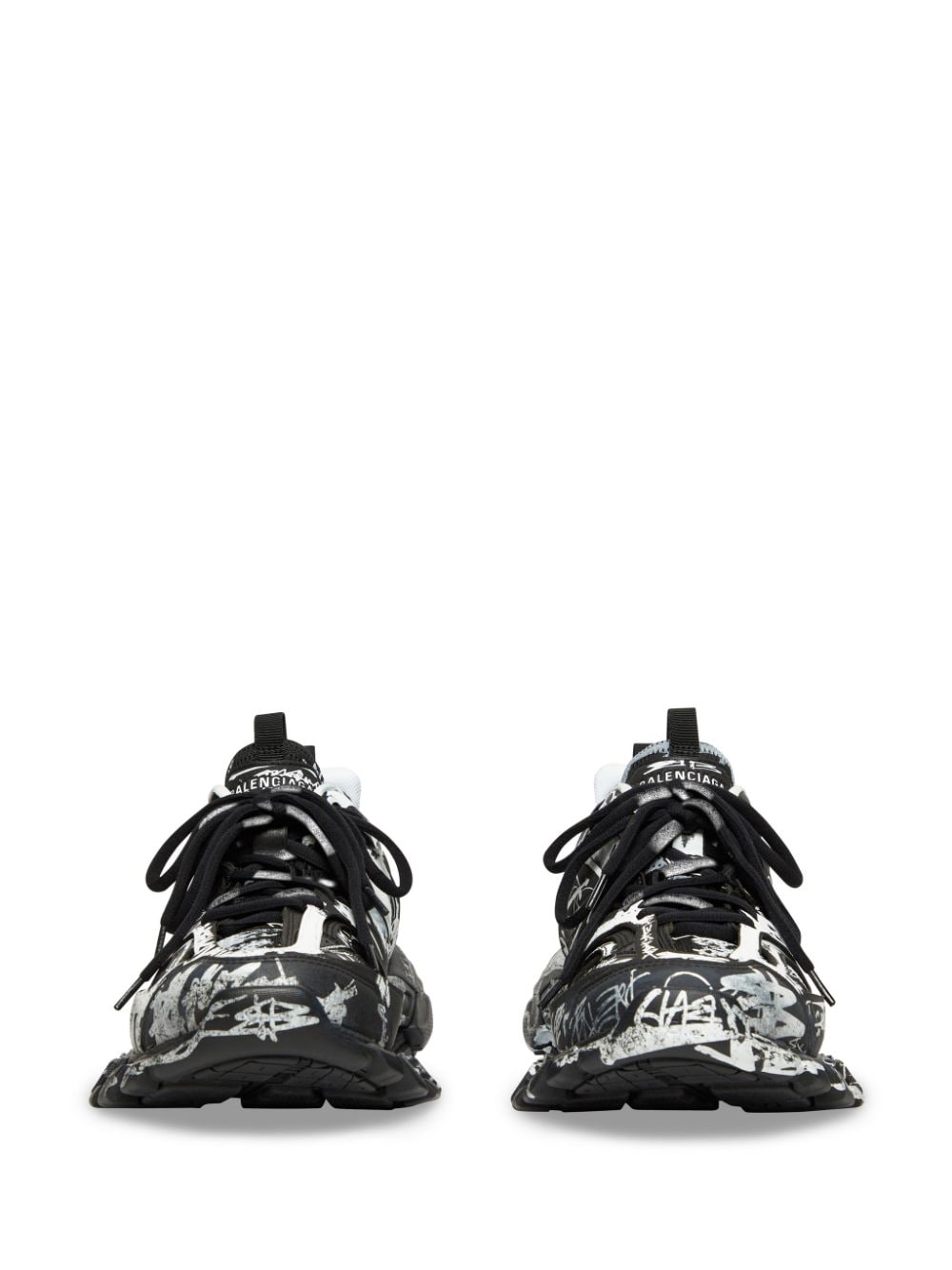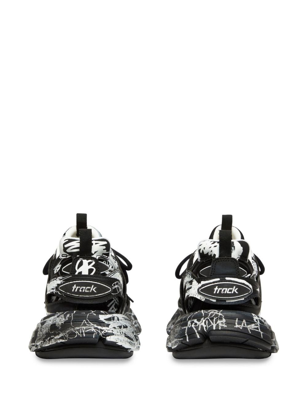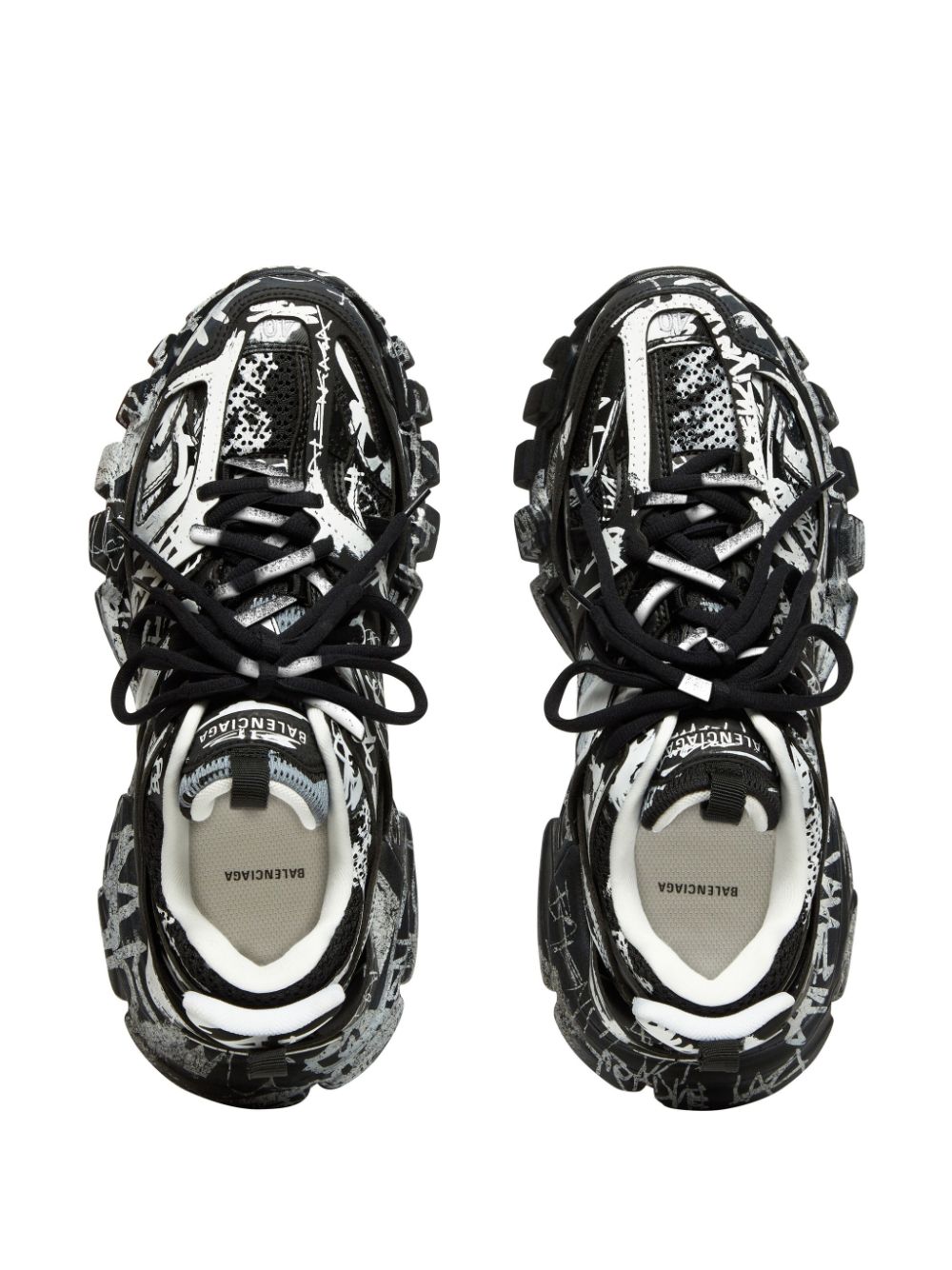 Debuted on Balenciaga’s AW21 runway, the brand re-imagines its Track sneakers in a bold all-over graffiti print for SS23. The sneakers are characterised by a caged design that references retro hiking and running styles, merging style and comfort.