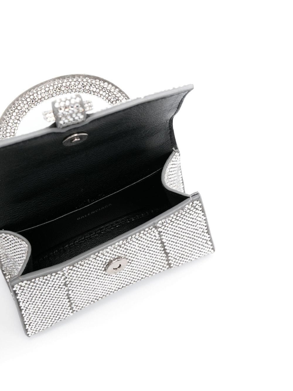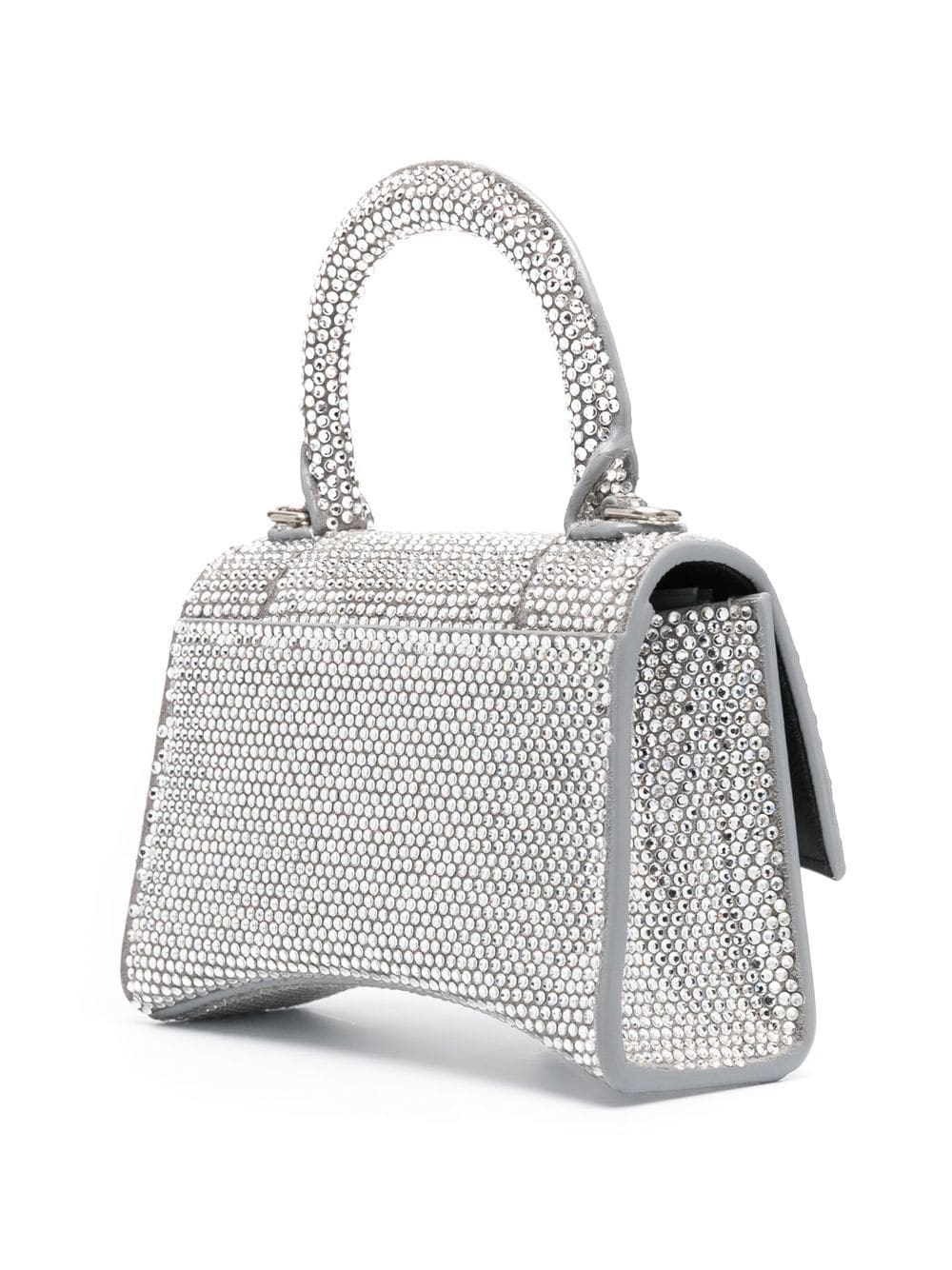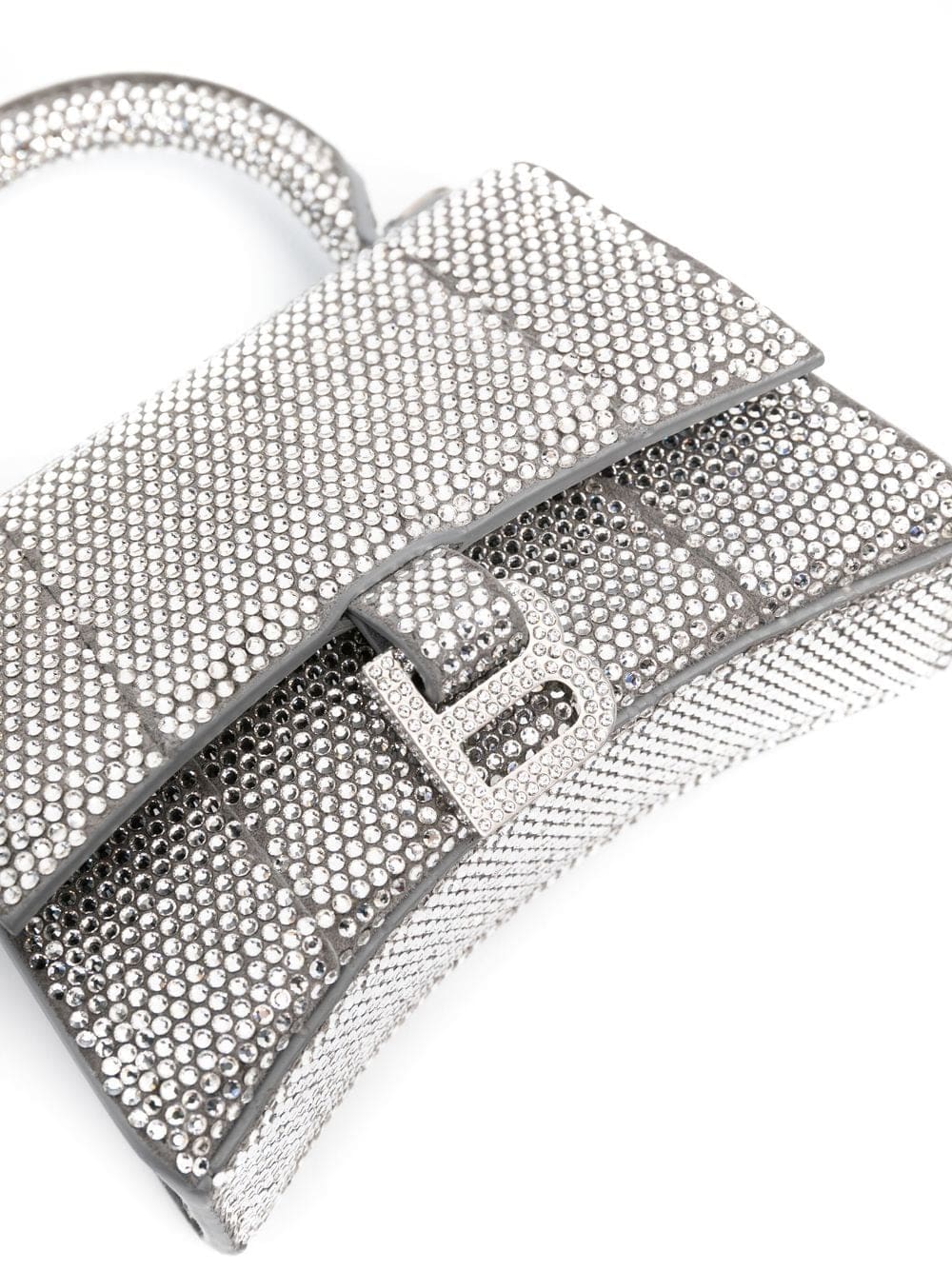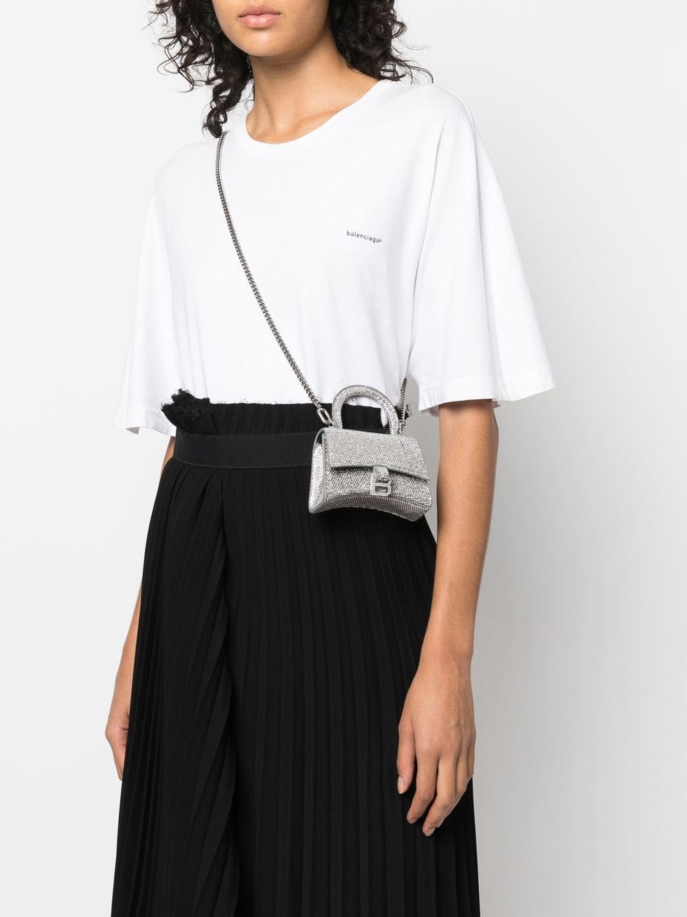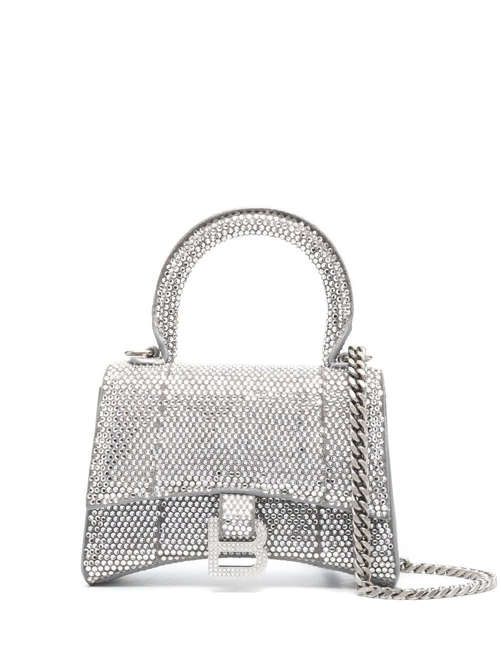 Defined by its curved base and structured silhouette, this Hourglass mini bag from Balenciaga is covered with crystals for a shimmering look. A matching silver-tone 'B' logo completes the accessory.
