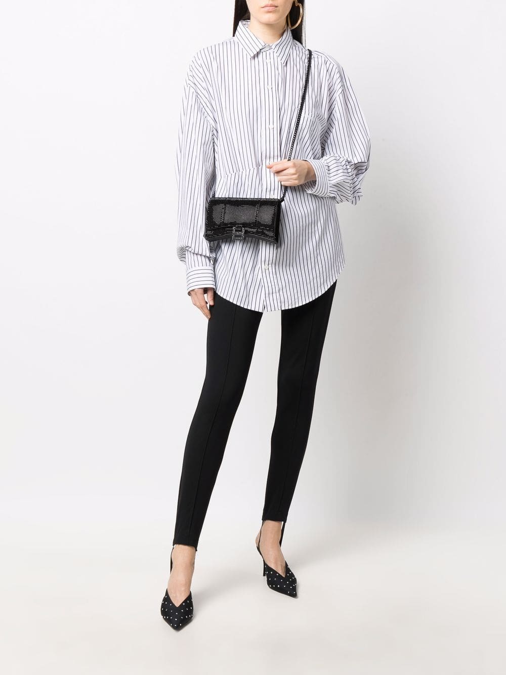 First launched in 2019, the Hourglass bag has become an iconic Balenciaga hallmark. Made from calf leather, this popular silhouette has been given a modern update with an all-over crystal studded surface in a black tonal design and finished with the classic B-shaped logo to the front.