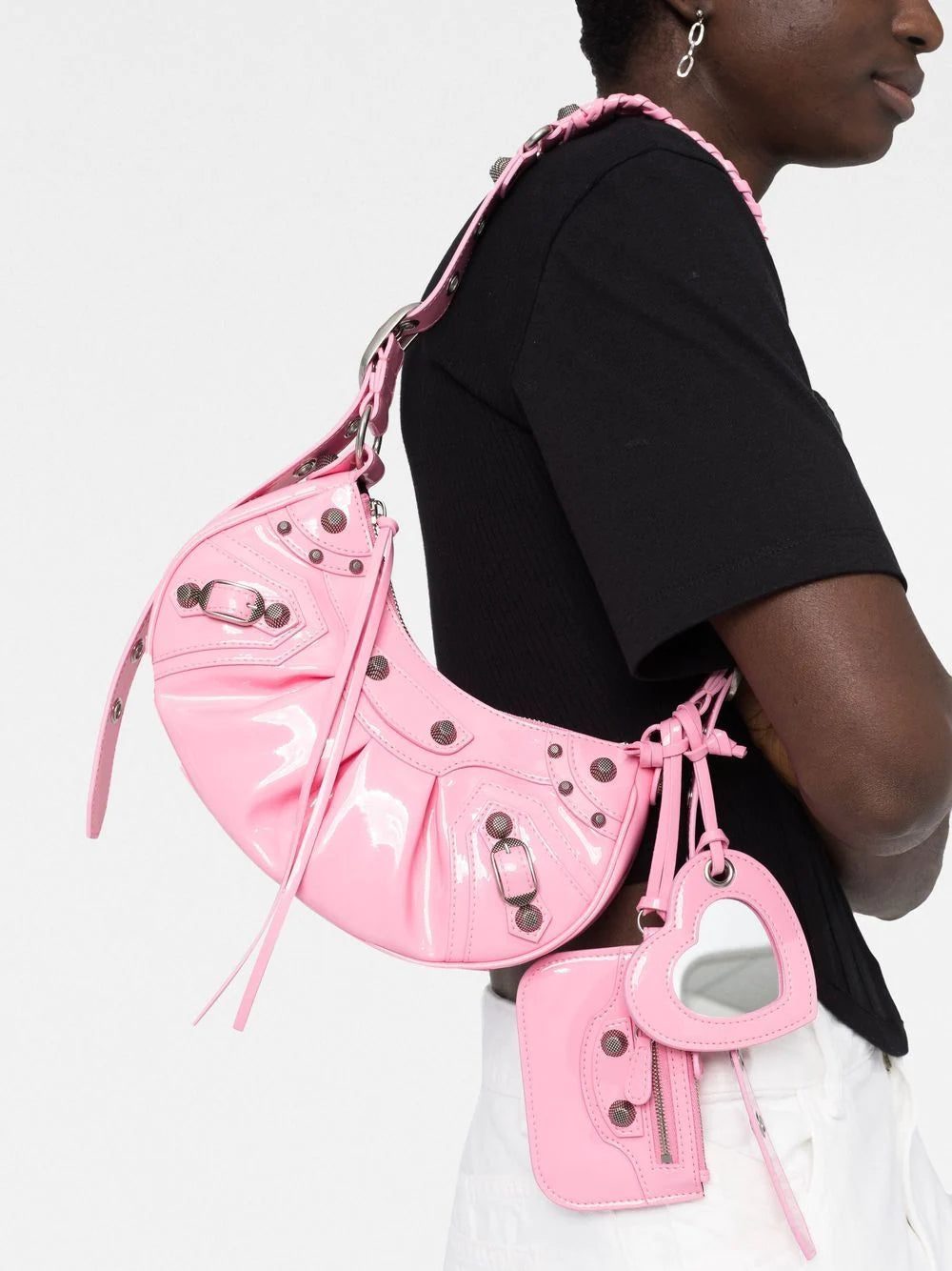 An iconic silhouette, Balenciaga's Le Cagole bag is instantly recognisable as the brand. Featuring gathered detailing and stud embellishment, the accessory is reminiscent of early 2000's design with a modern edge.