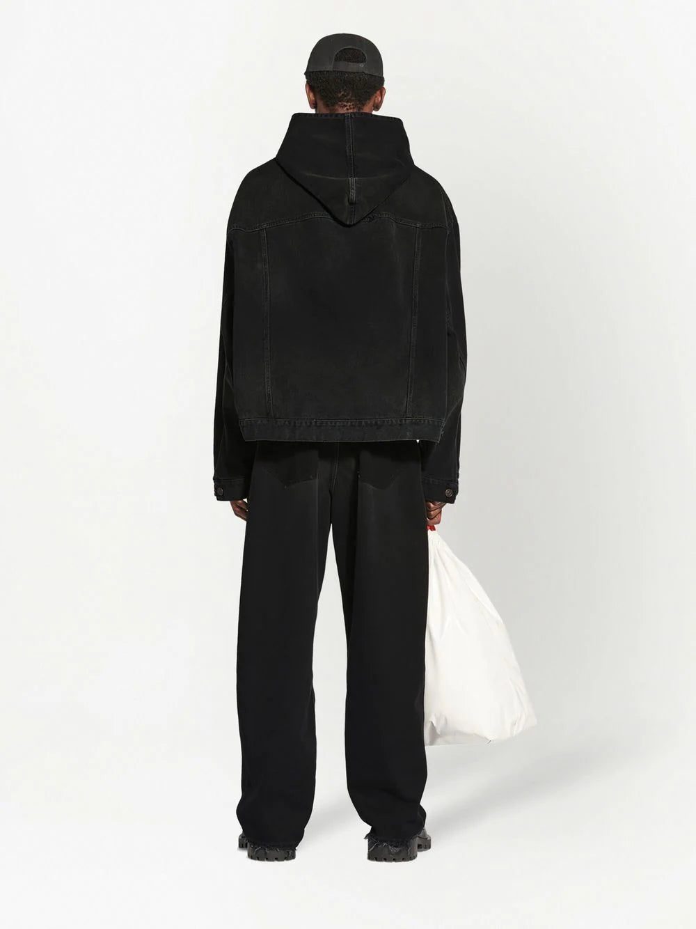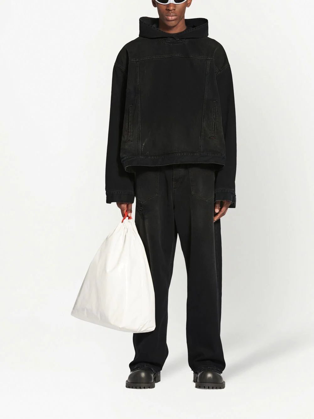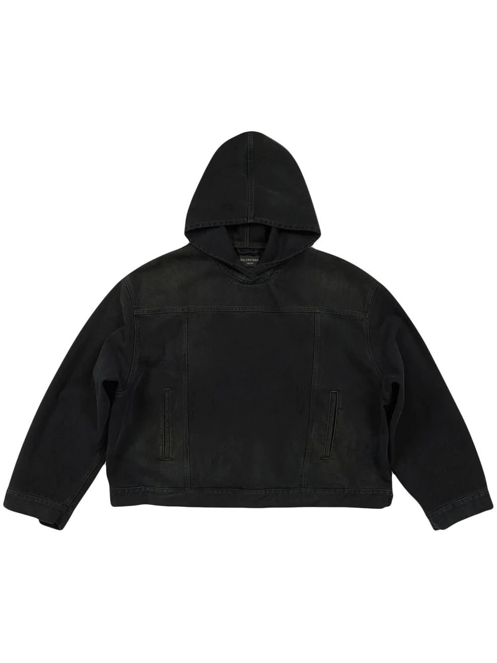 matte-effect denim hoodie from BALENCIAGA featuring black, cotton, matte finish, classic hood, long sleeves, buttoned cuffs, two side slit pockets and straight hem. When buying this unisex item, keep in mind that it is graded in standard men's sizing.. Conscious: We've partnered with Good On You – an ethical agency that rates how sustainably brands perform. This item comes from a brand that performs well in relation to their impact on the planet..