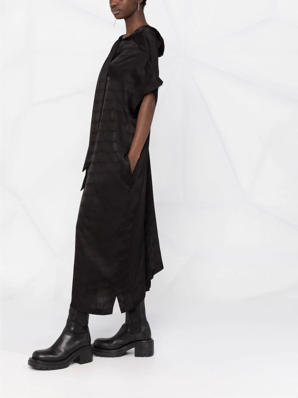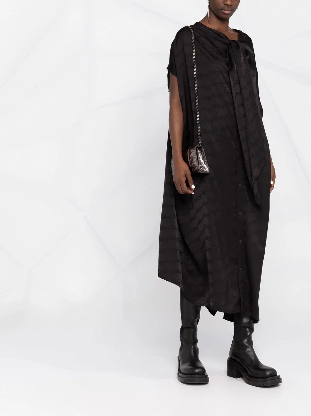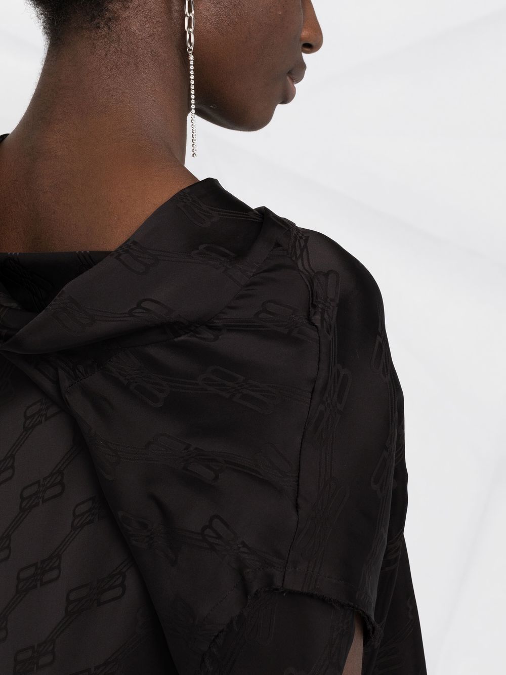 Crafted with raw-cut edges and draped detailing, this Balenciaga dress is finished with knotted embellishment to the front and rear. This combination creates a deconstructed aesthetic for the contemporary piece.