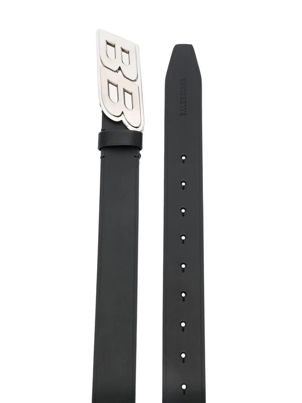 logo-buckle leather belt from BALENCIAGA featuring black, calf leather, logo buckle fastening, punched holes and adjustable fit. Conscious: We've partnered with Good On You – an ethical agency that rates how sustainably brands perform. This item comes from a brand that performs well in relation to their impact on the planet..