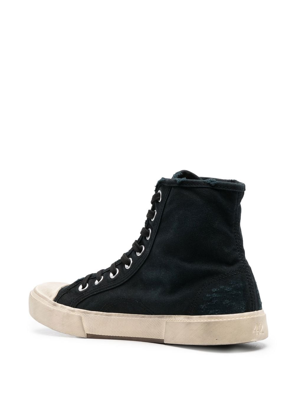 Blurring the line of time, Balenciaga brings these Paris high-tops to its AW22 collection. Its frayed finish is combined with a distressed effect on the sole, never forgetting about the brand’s name, stamped right on the front.