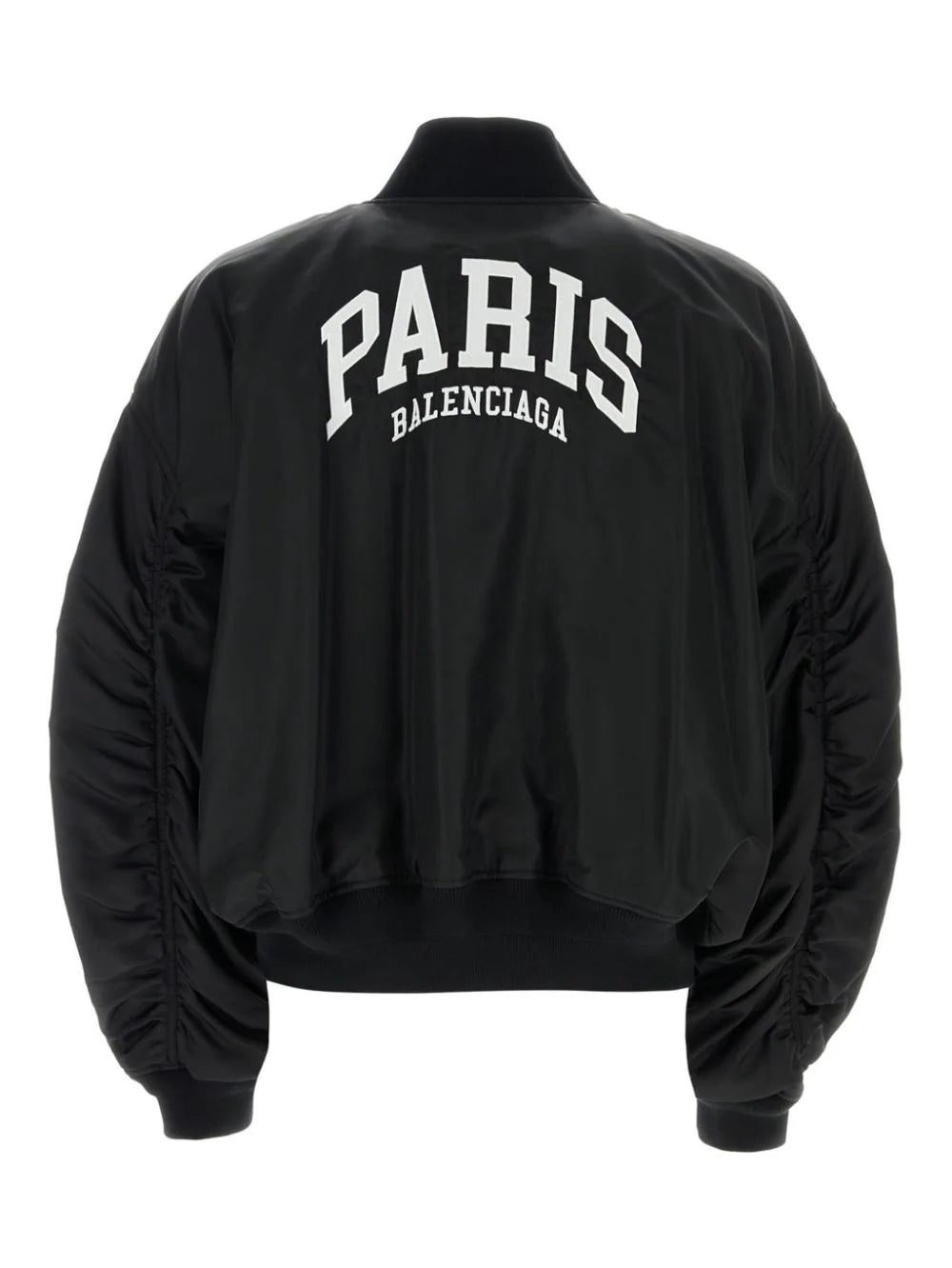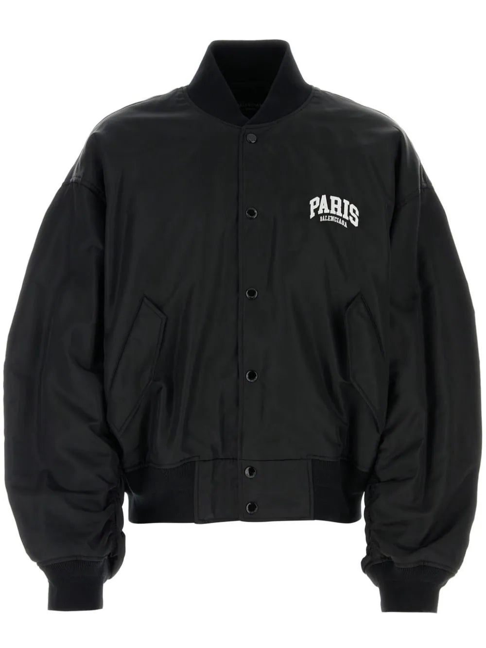 Balenciaga pays homage to its current base with this Paris logo bomber jacket. It's cut to a statement oversized silhouette and printed with the signature logo lettering in contrasting white.