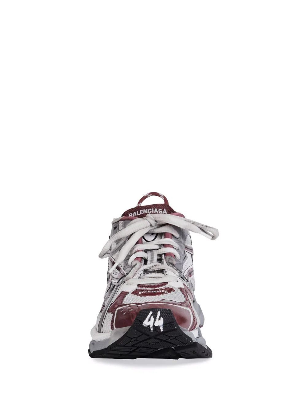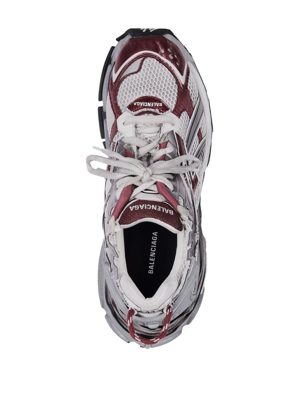 Balenciaga continues to champion sportswear aesthetic with this pair of grey and burgundy runner sneakers. Featuring mesh panelling across the upper, this element provides ventilation whilst on the move and a chunky ridged rubber sole gives ample support.