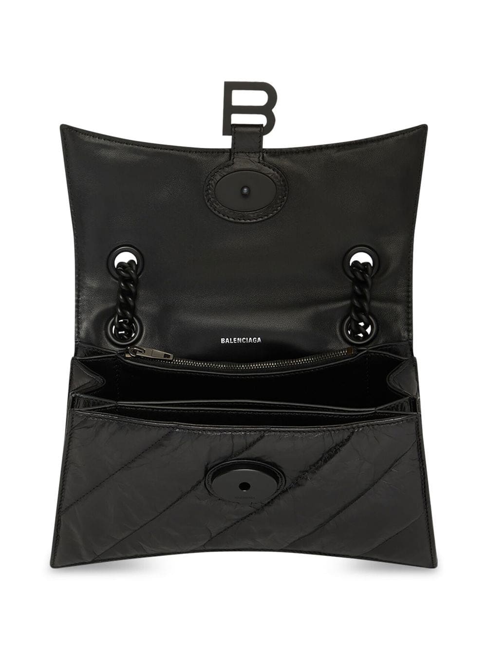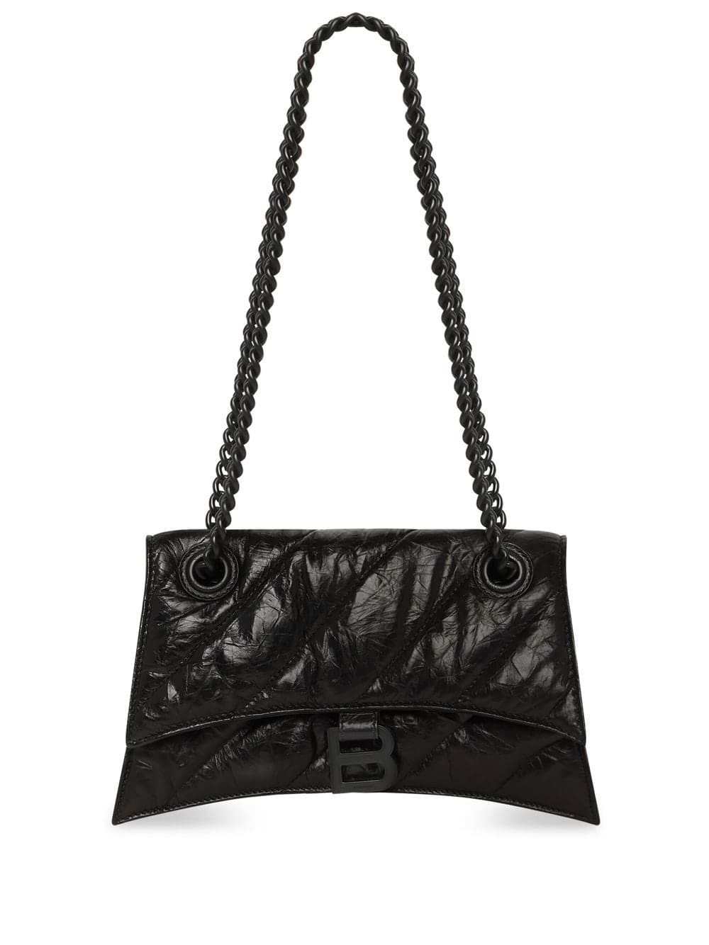 A new addition to Balenciaga's bag edit, the Crush Bag is defined by its curved shape and quilted finish. Held by a sliding chain strap, it is completed with the iconic B logo plaque on the front.