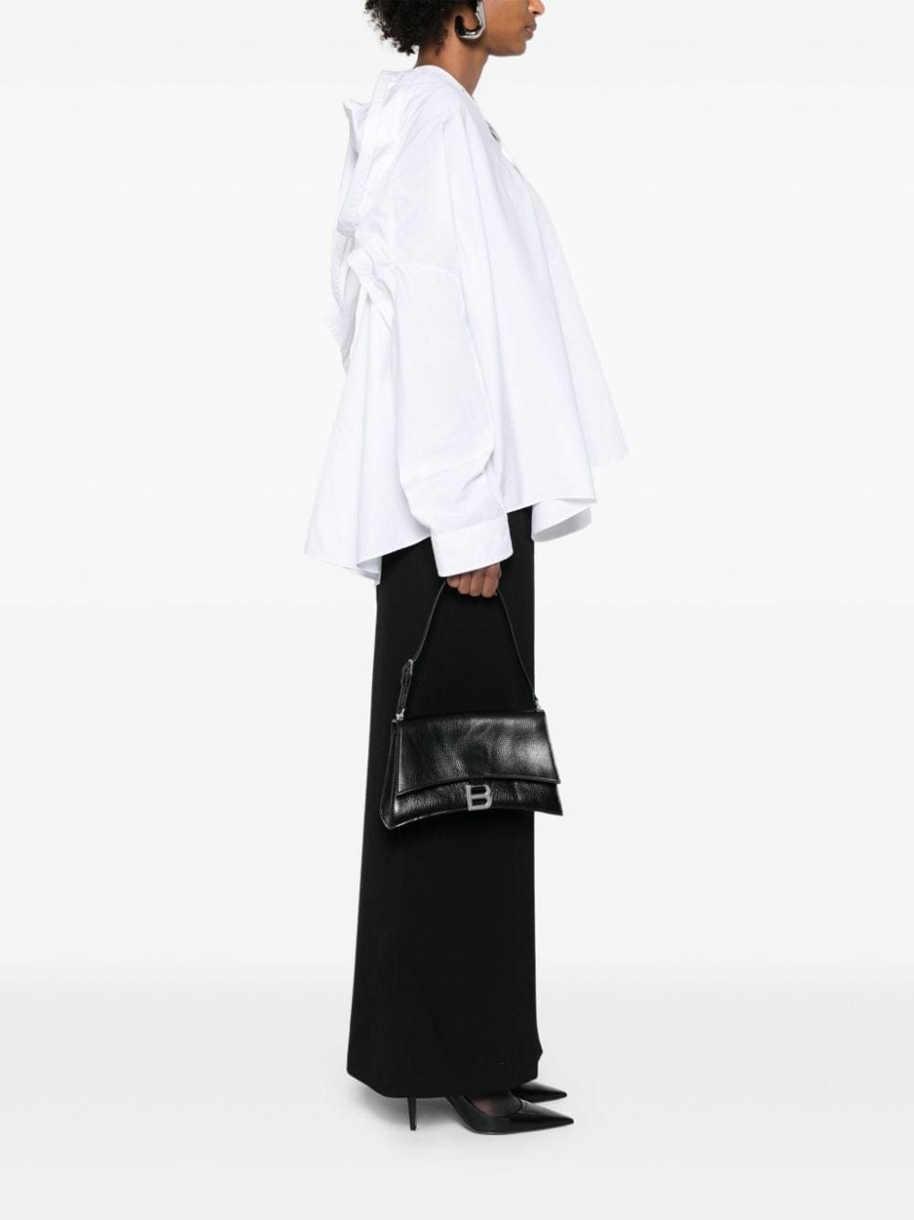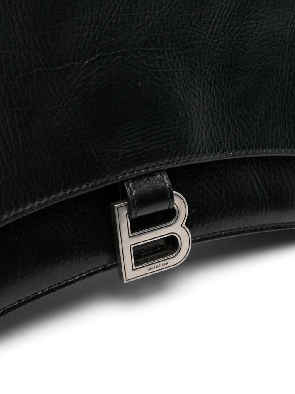 The Crush Sling bags are inspired by the bold curvature and sharp lines of the time-count objects. Ingrained in Balenciaga’s DNA, it embraces the label's focus on discreet branding with the signature silver-tone B plaque to the front. It’s crafted from textured leather in Italy and features an adjustable shoulder strap.