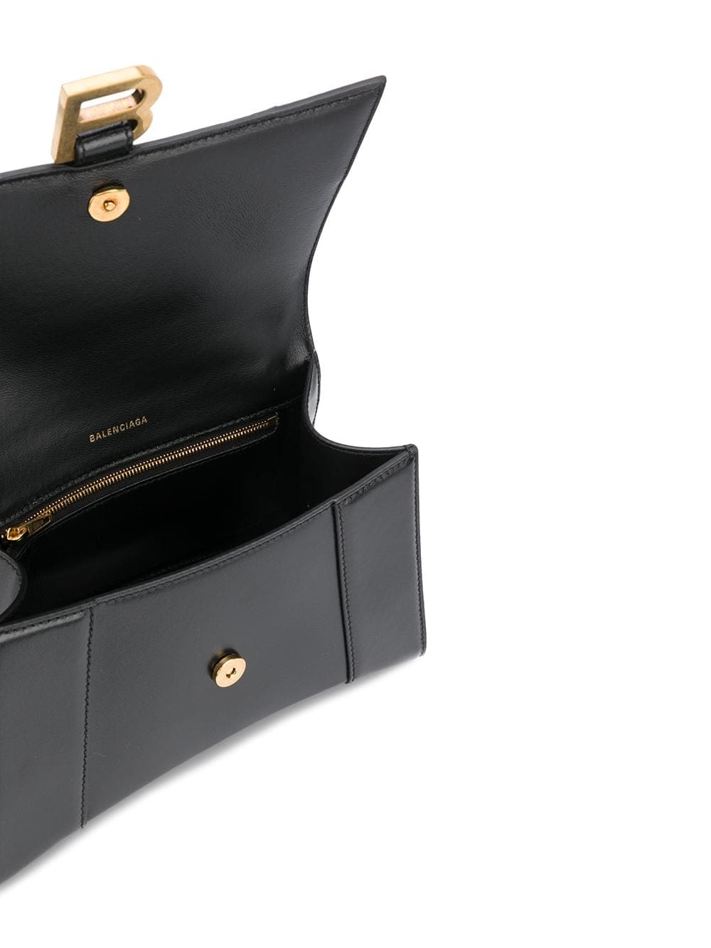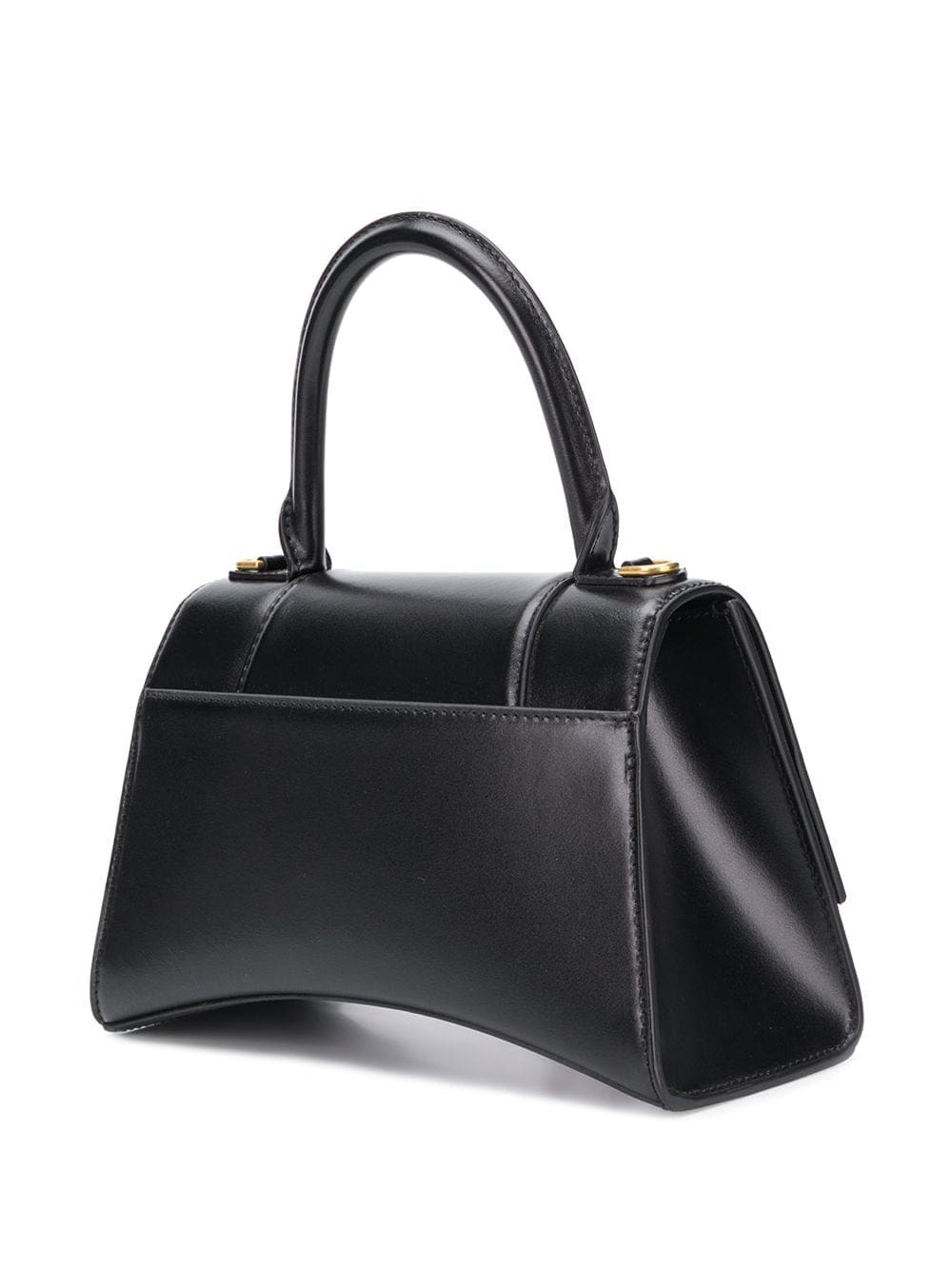 Good things come in good (Balenciaga) packages. This small Hourglass tote bag has been expertly crafted in Italy from shiny black leather and is detailed with a logo on the front. Small but mighty.