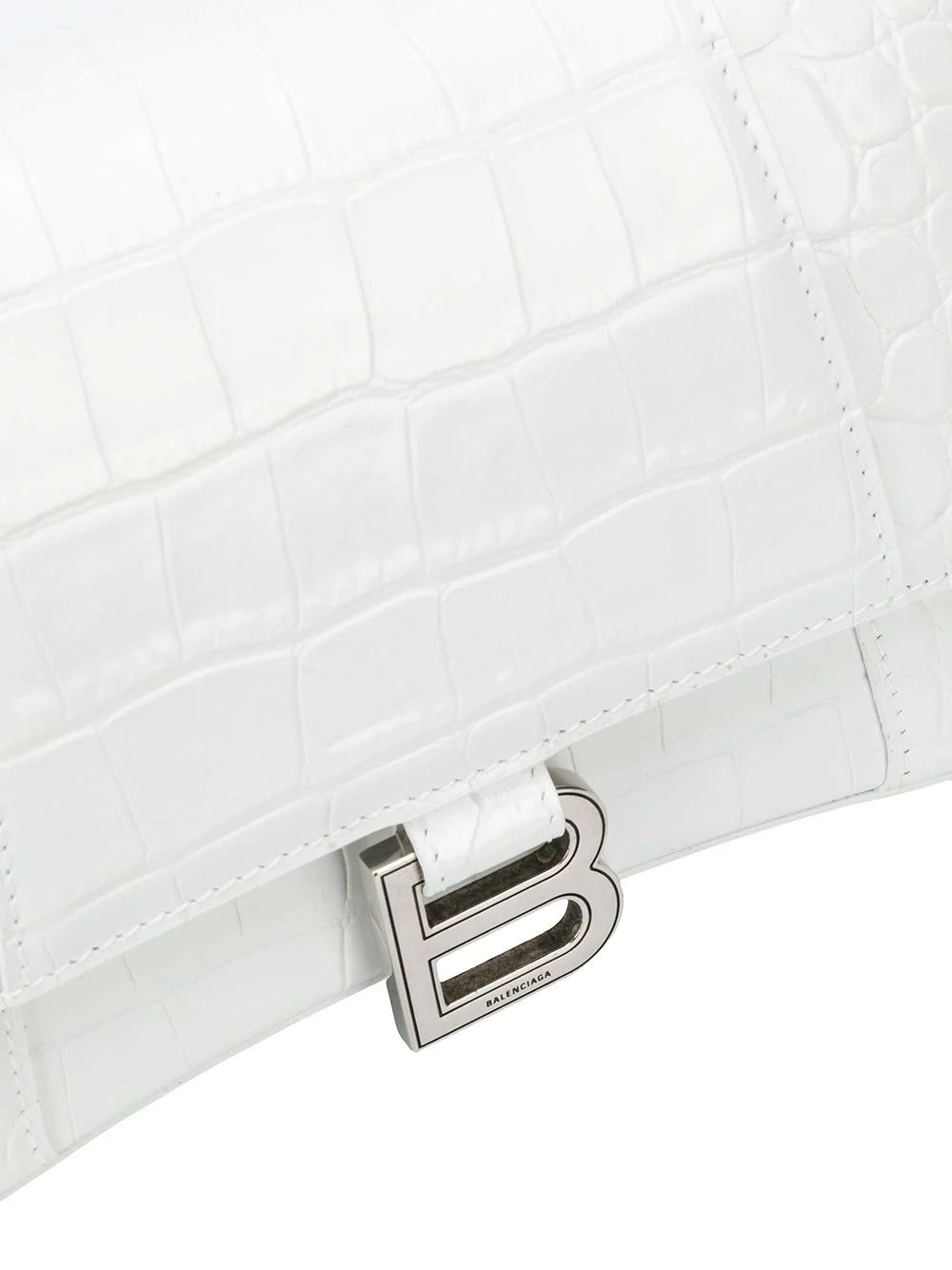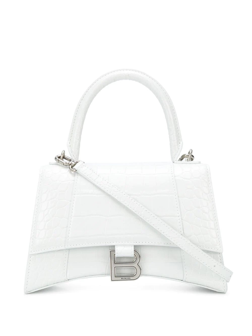 An embossed take on an iconic design, this Hourglass bag is presented here in a small-sized iteration. Constructed from white leather, this version opens up to a compact interior that fits small belongings distinctively.