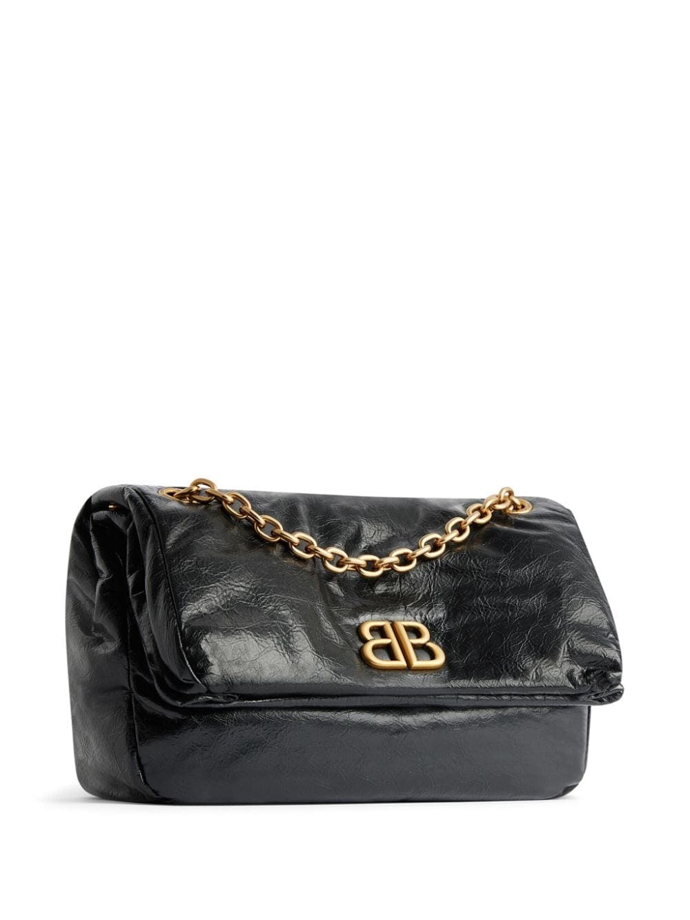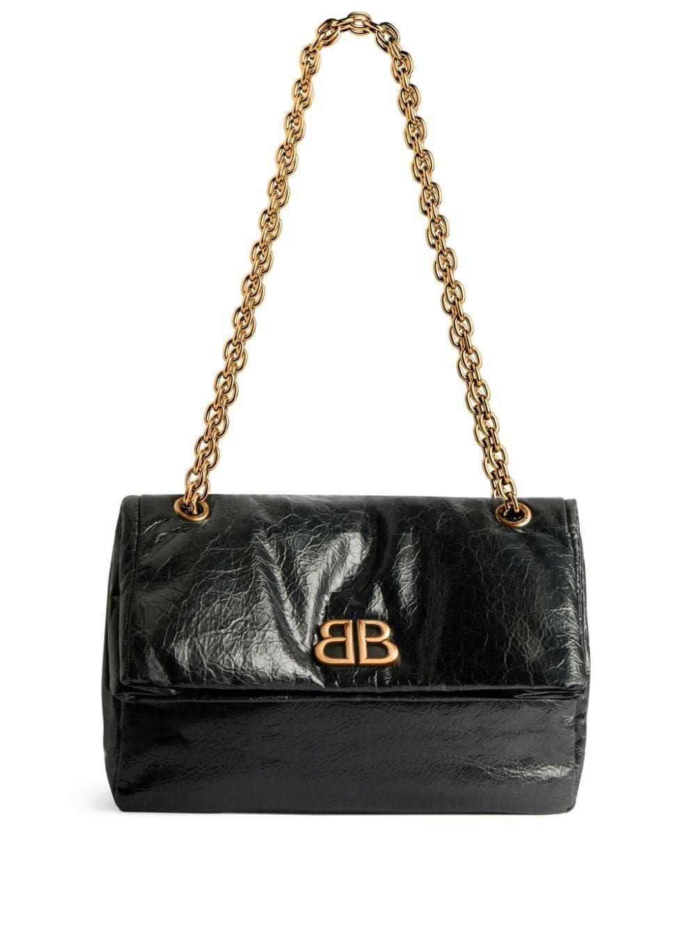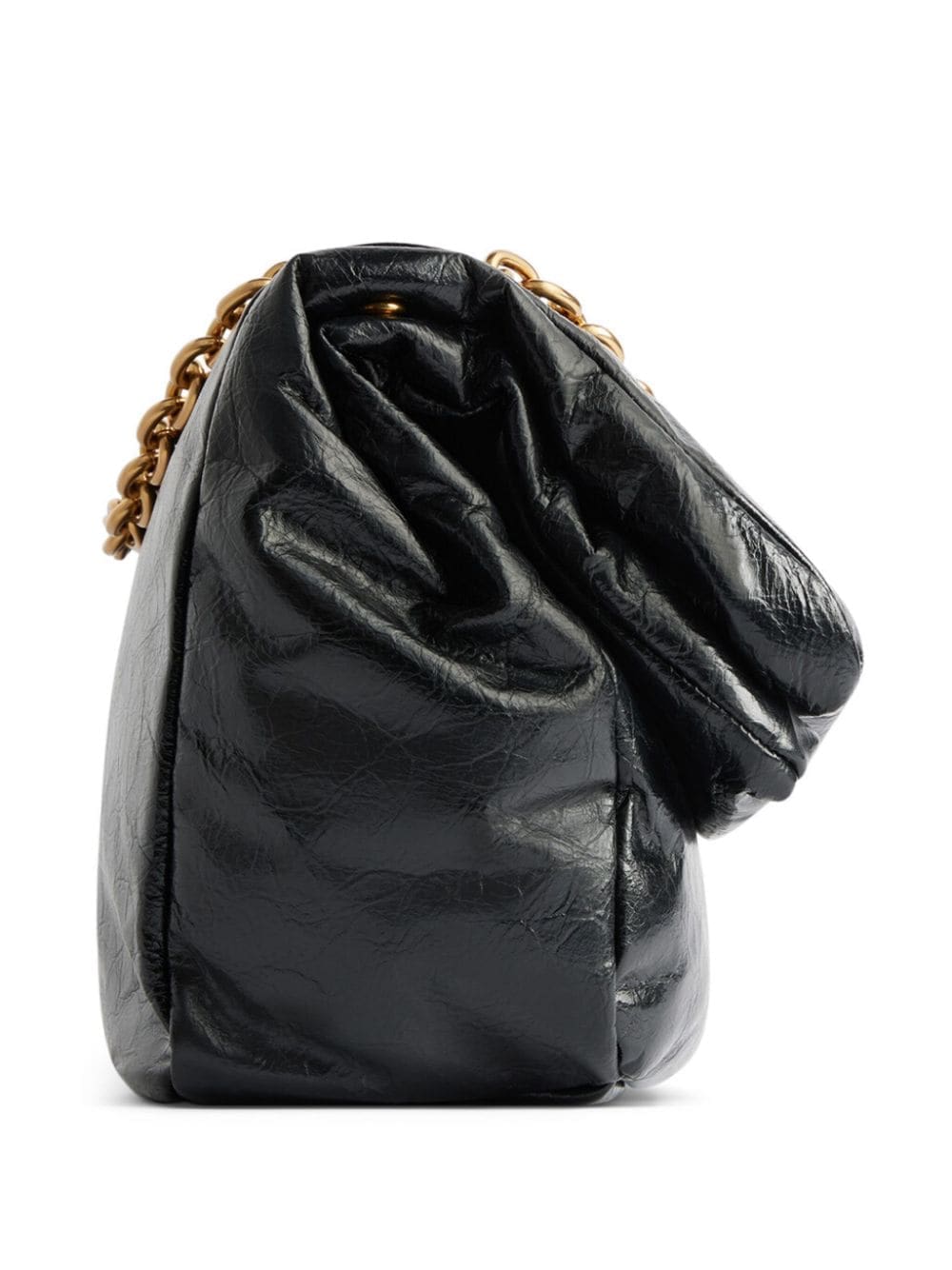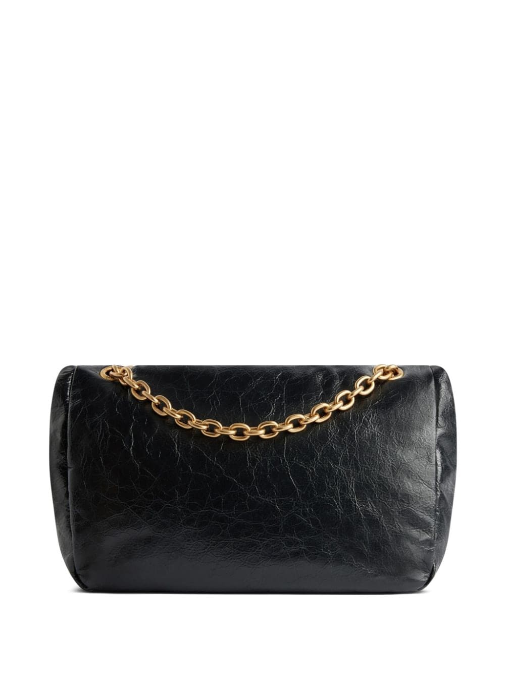 Balenciaga balances boldness and minimalism with this shoulder bag. It features a gold-tone logo plaque on the front and is given a crinkled finish.