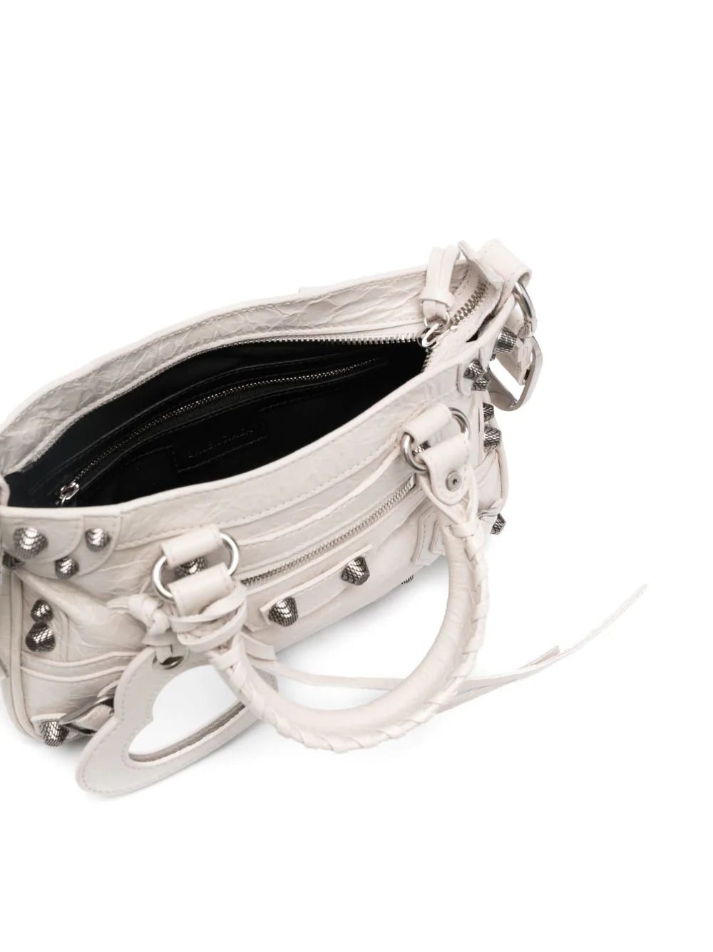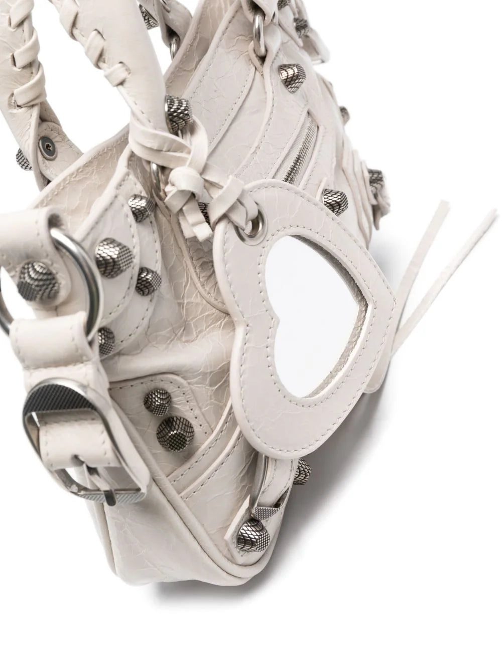 Taking its name from the French stereotype describing a cool and confident girl from Marseille, Balenciaga's Le Cagole bag adopts the maximalist aesthetic of the character in its bold design. This small iteration is accented with studs and eyelets and comes with a heart-shaped mirror and adjustable shoulder strap.