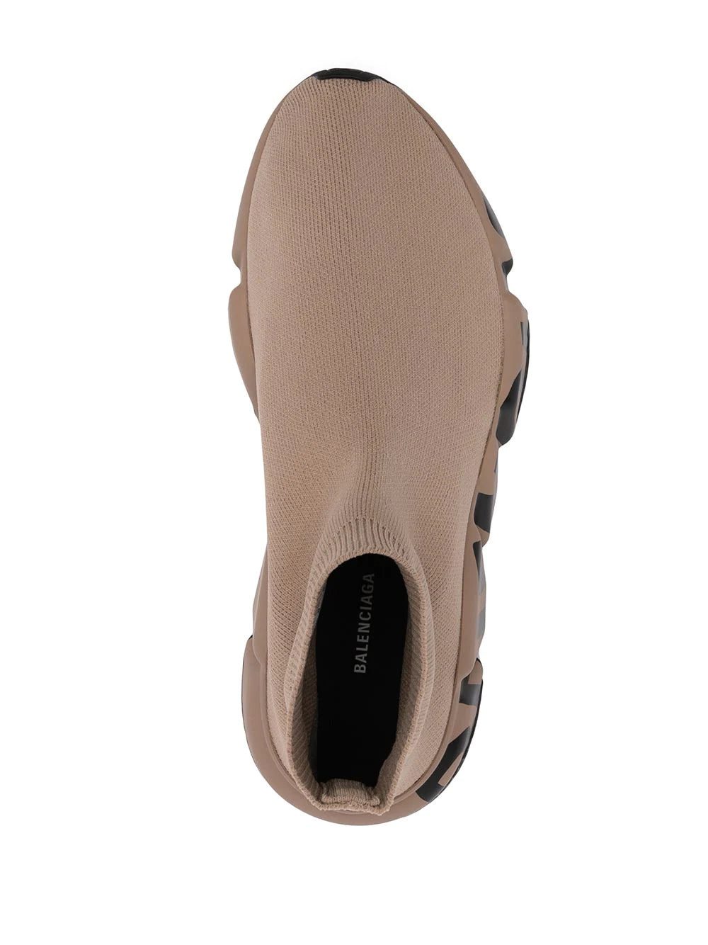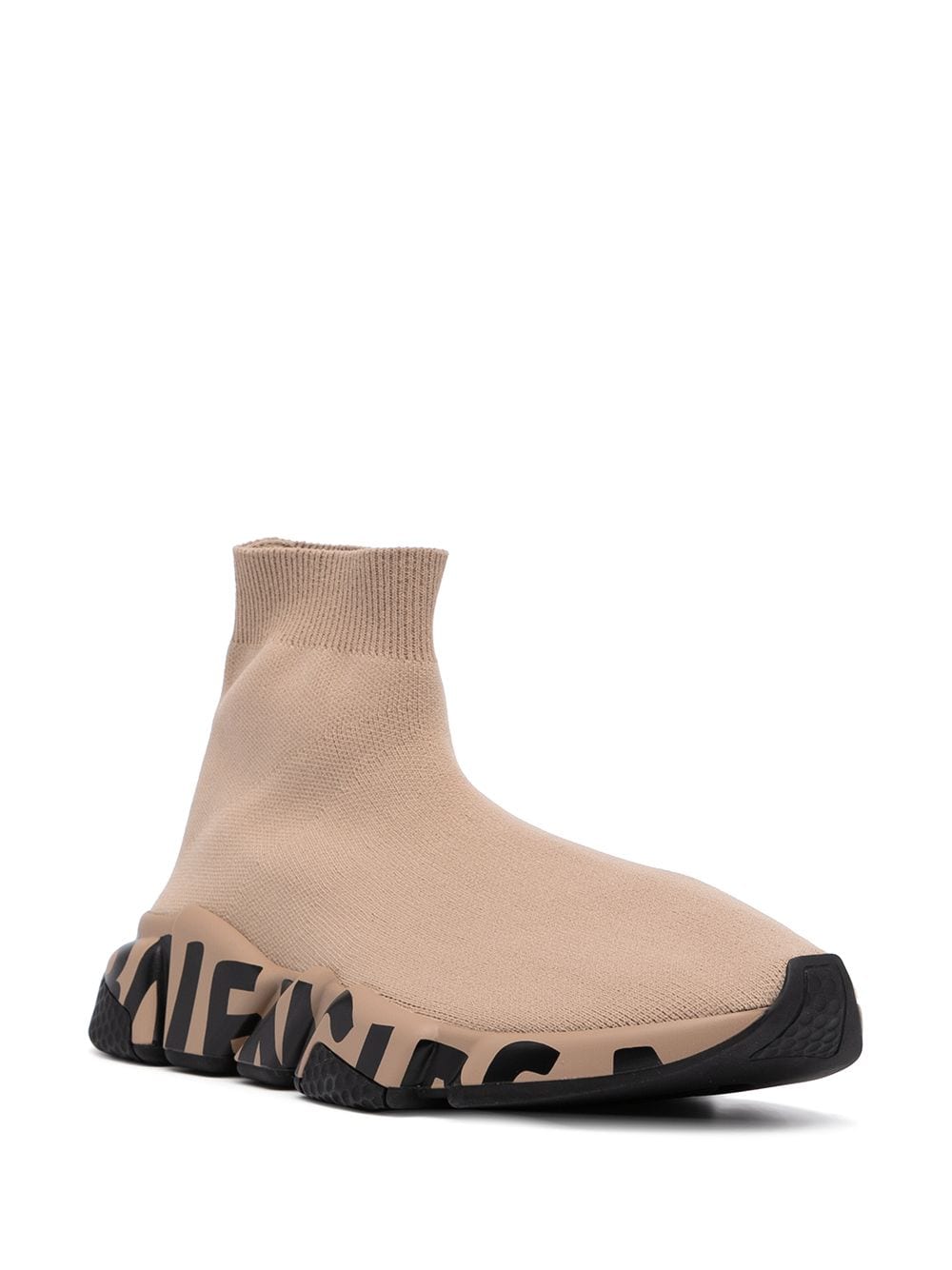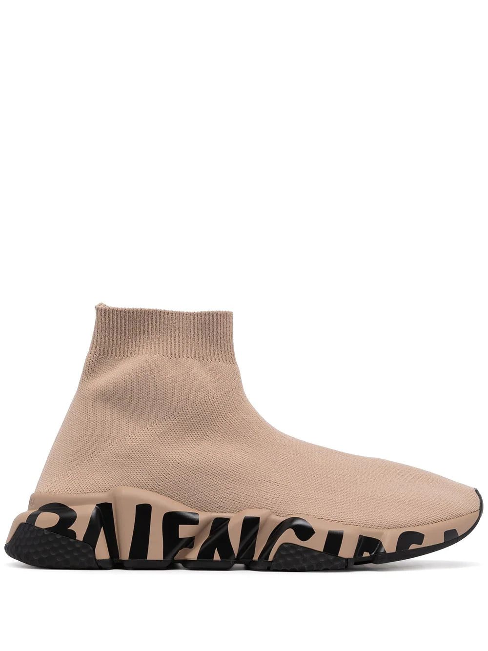 It's time to pick up speed. These pink Speed sneakers from Balenciaga have a sock-style ankle and graffiti lettering on the rubber sole. Brighten up your casual looks. Featuring a round toe, a knitted style, a branded insole, a stretch fit and a flat rubber sole.