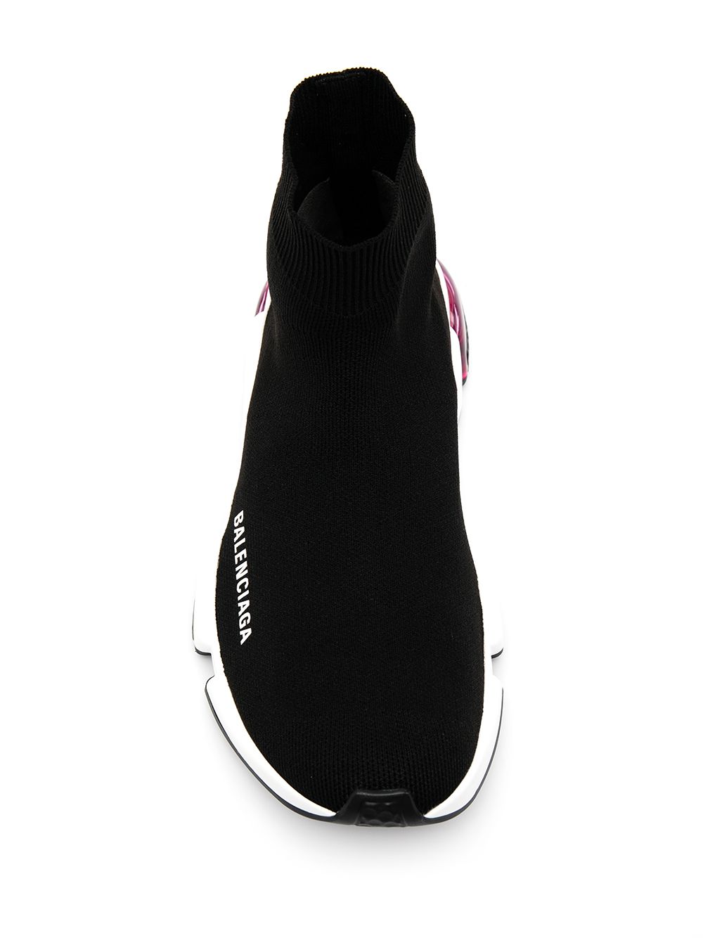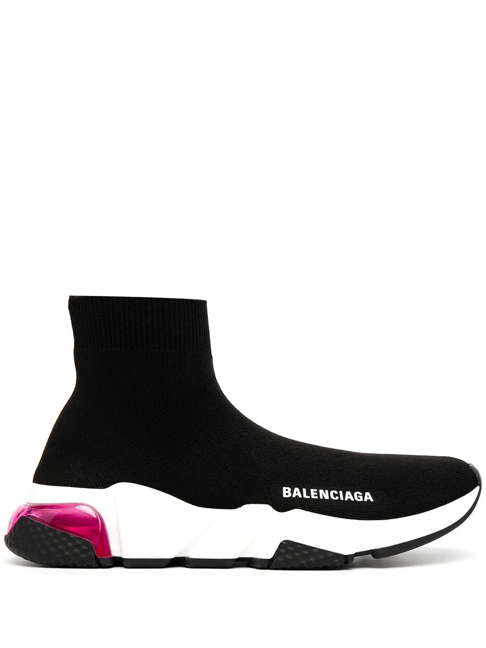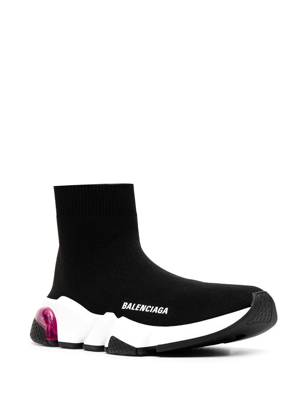 Get ready to hit the streets in style with the cool black Speed LT clear sole sneakers from Balenciaga. Made with an easy slip-on style, these are the fastest way o finish any look. Run for it. Featuring a round toe, a slip-on style, a printed logo, mesh panels and a rubber sole.