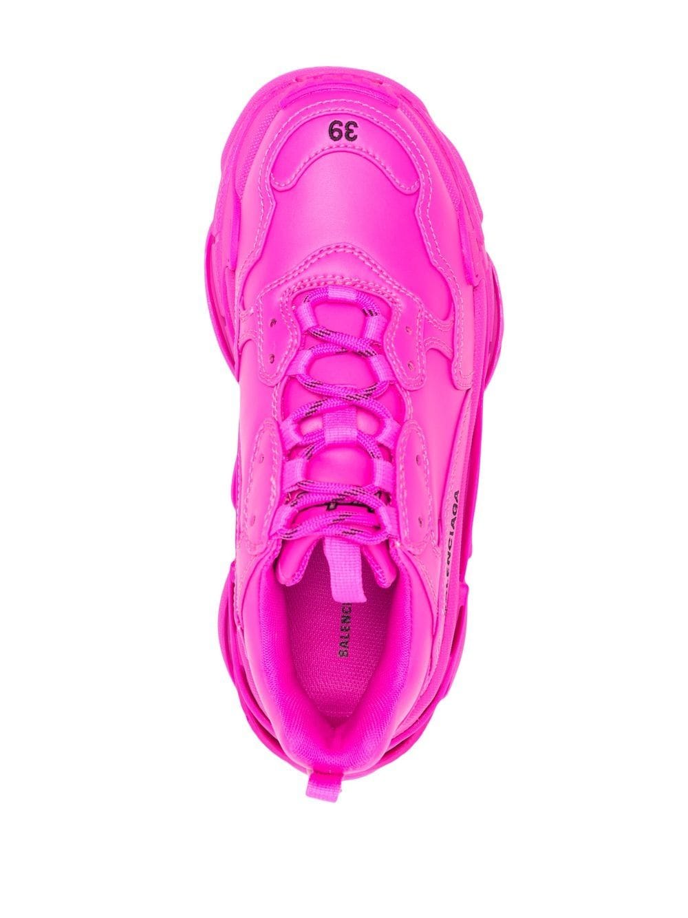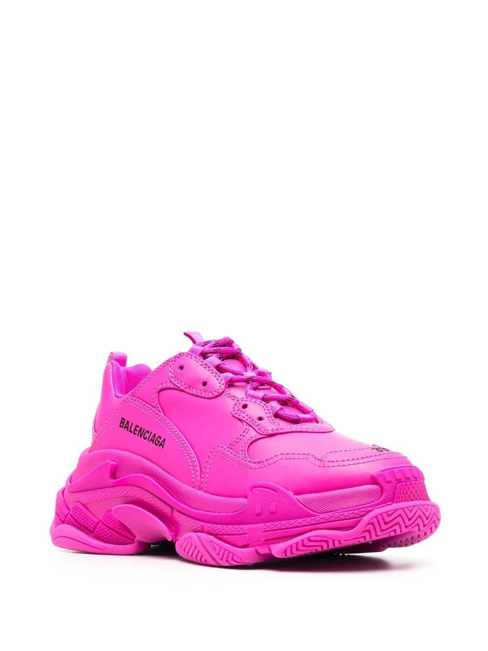 So-called because of its signature triple-stacked rubber sole, the Triple S sneakers are an iconic Balenciaga hallmark. Updated with a dark pink colourway and faux leather composition for AW22, this pair is detailed with an embroidered logo to the side.
