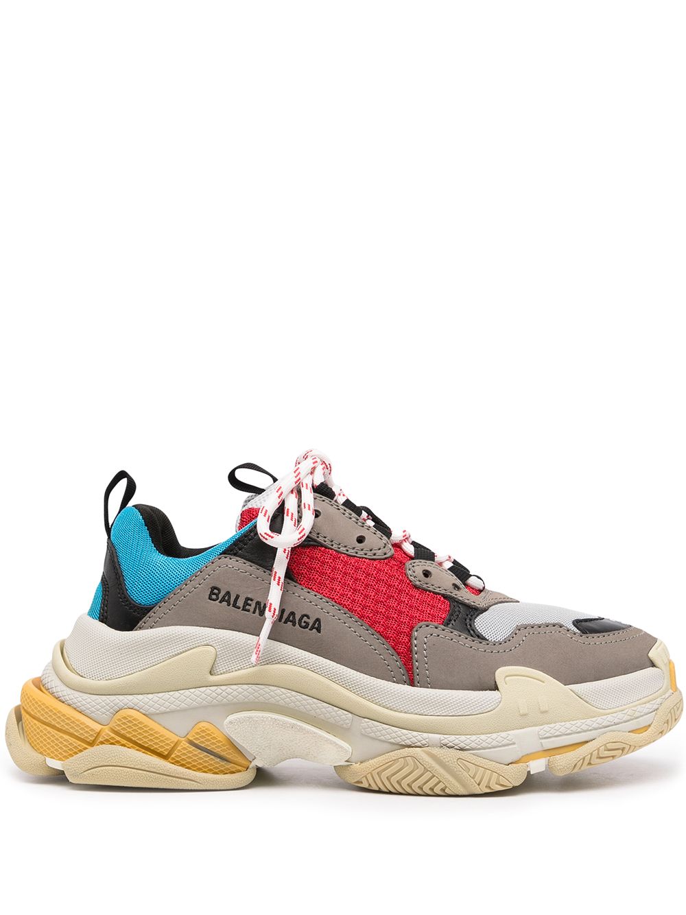 Balenciaga's Triple S sneakers get their name from their triple-stacked soles, featuring running, basketball and track styles. In this iteration they feature panels in different colours and interchangeable laces that gives the design an additional creative edge.