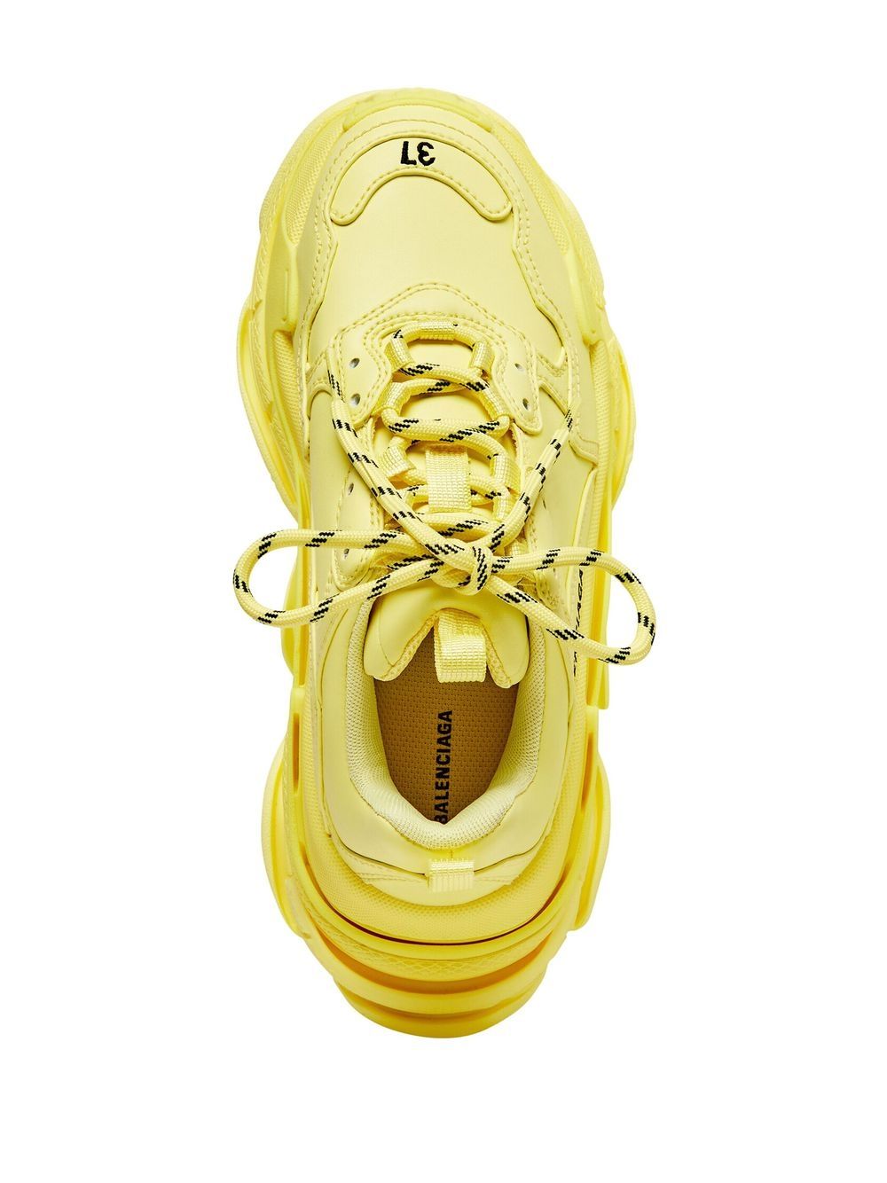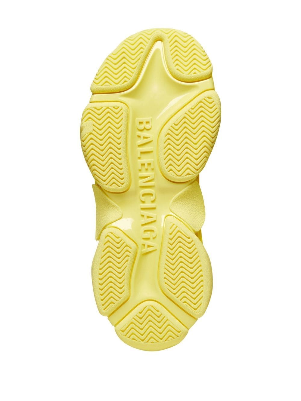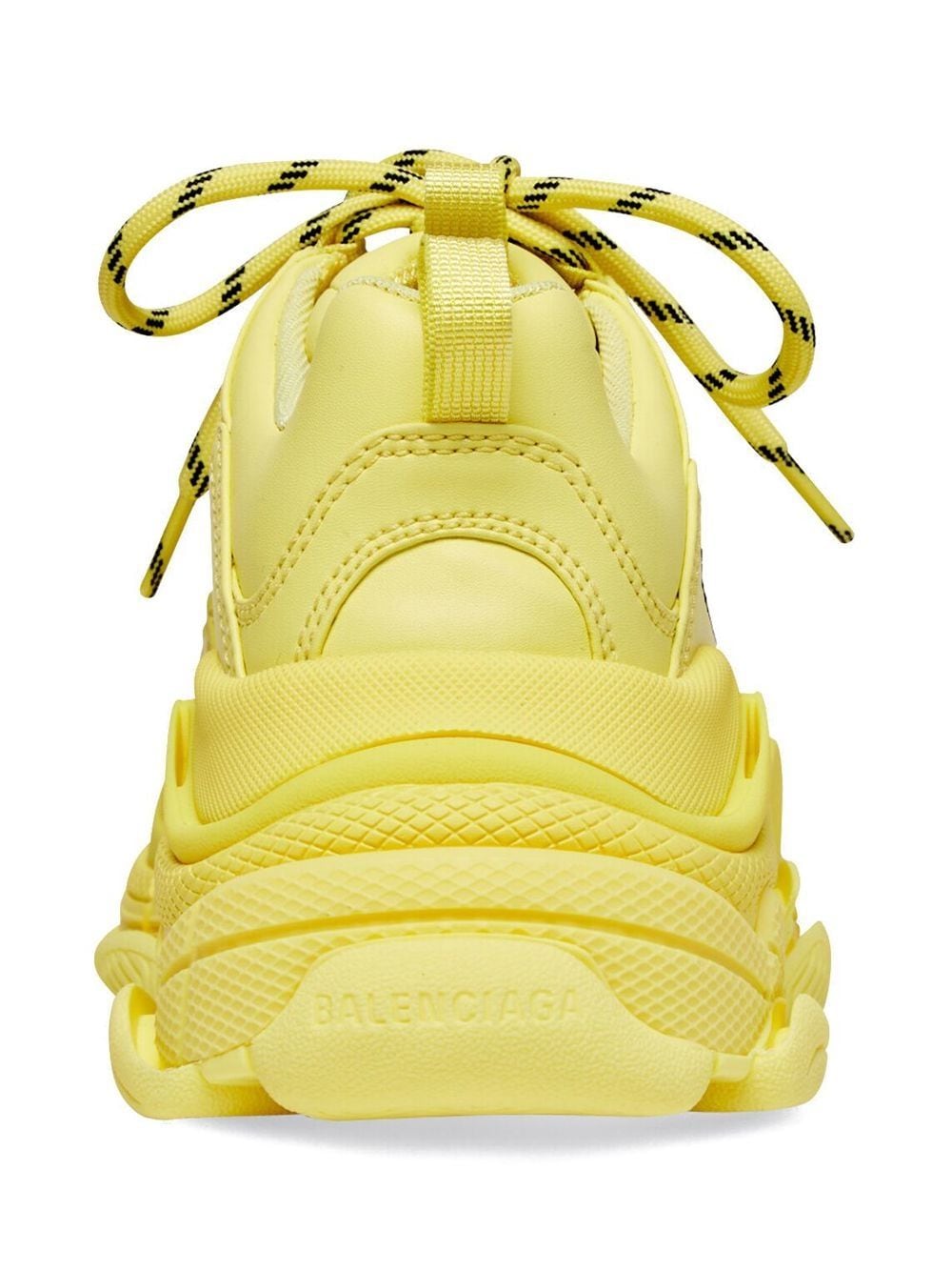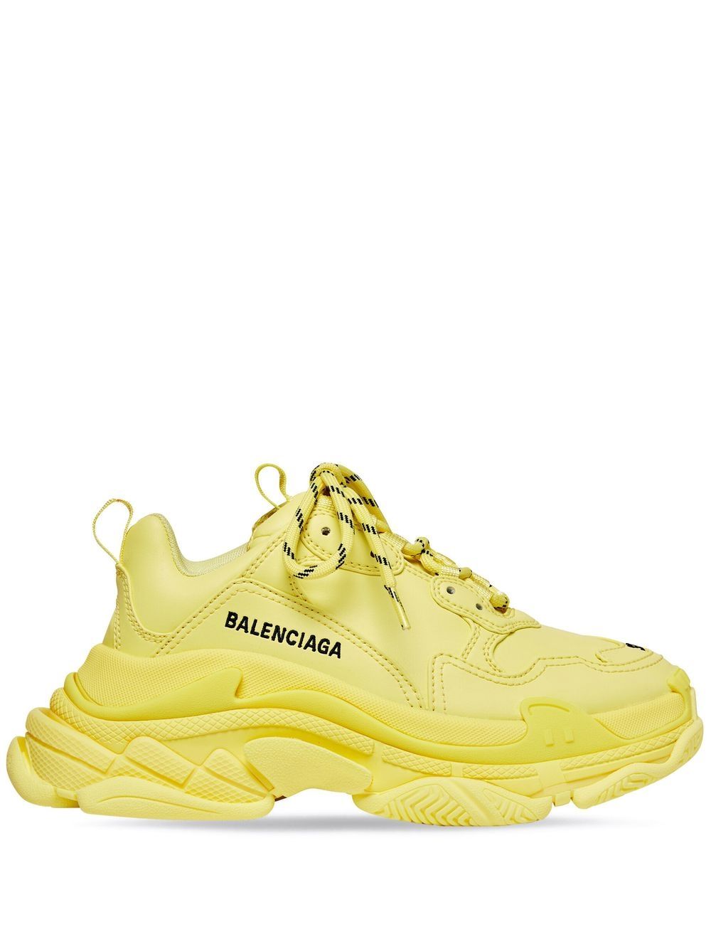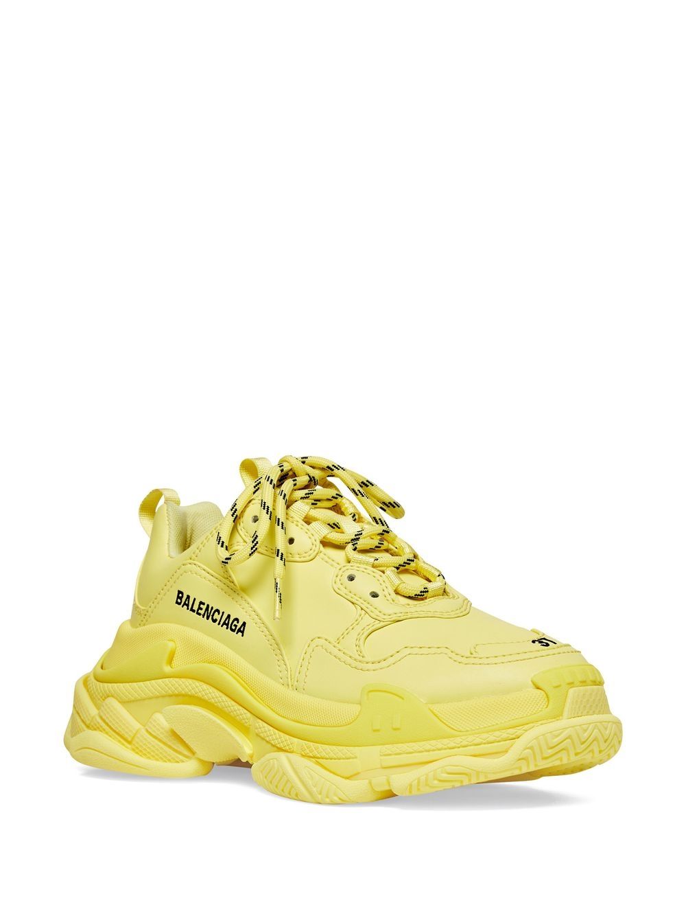 So-called because of its signature triple-stacked rubber sole, the Triple S sneakers are an iconic Balenciaga hallmark. Updated with a light-yellow colourway and faux leather composition for AW22, this pair is detailed with an embroidered logo to the side.