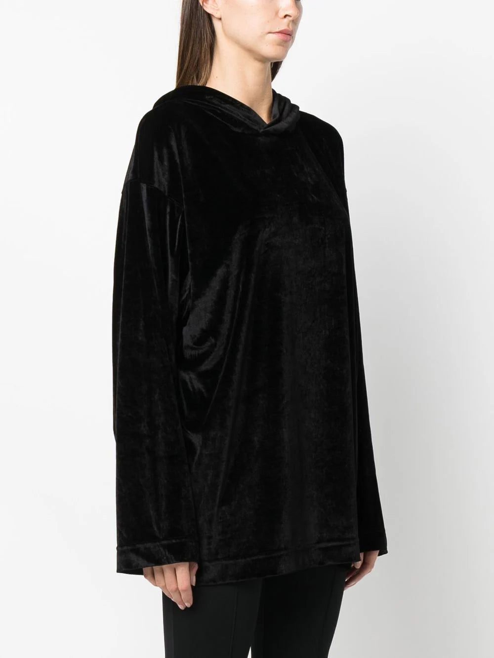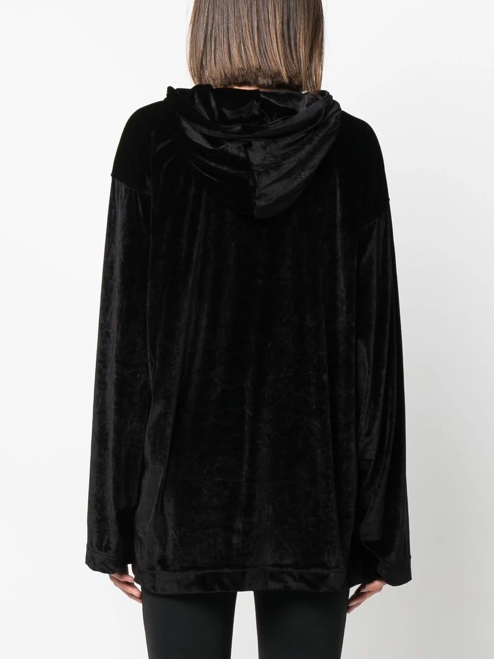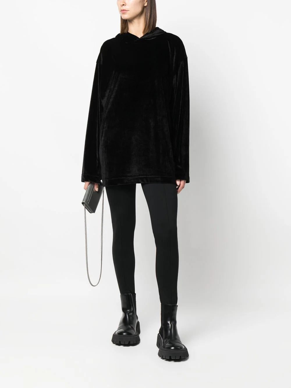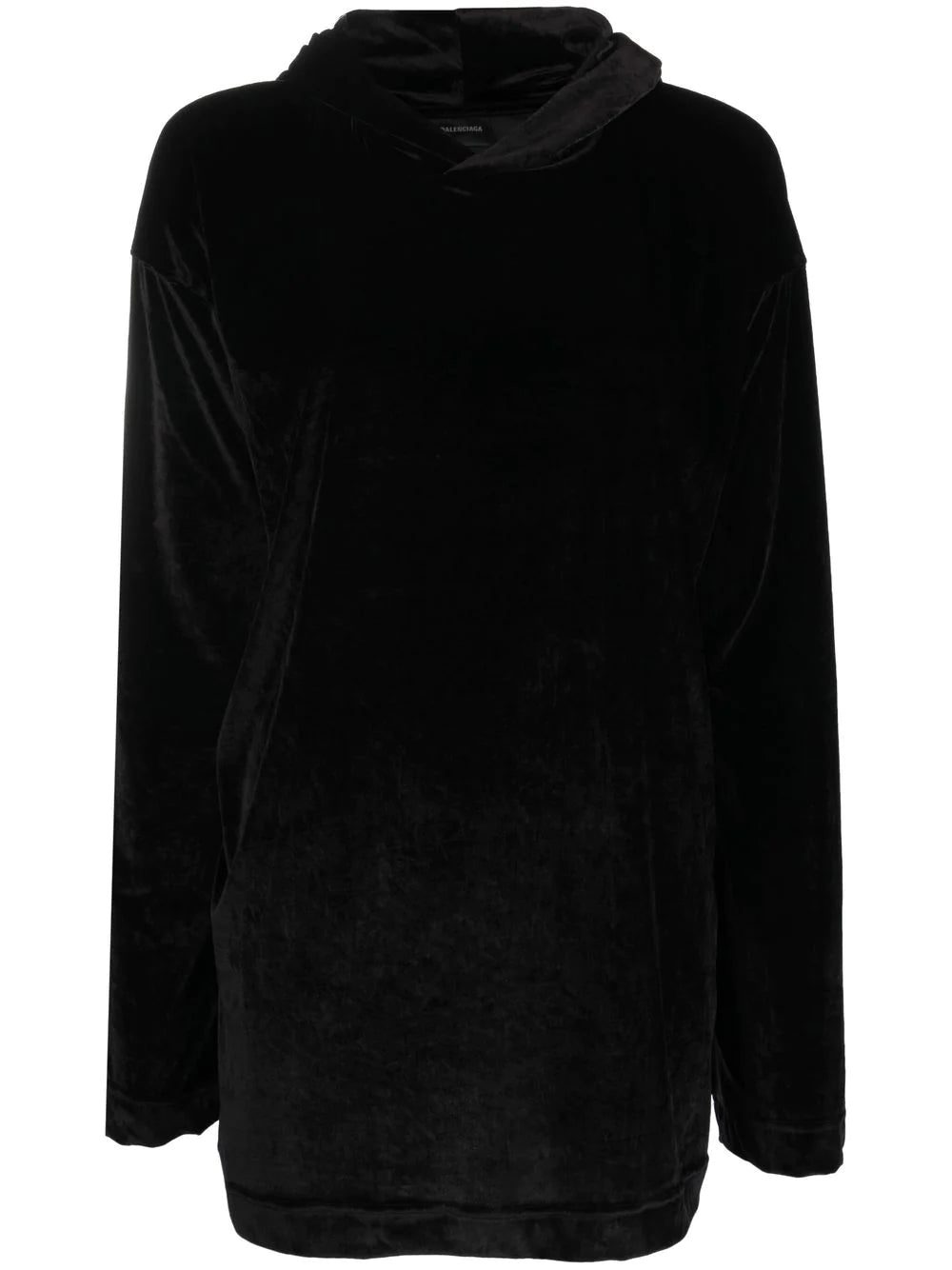 velvet-effect long-sleeved hoodie from BALENCIAGA featuring velvet effect, classic hood, long sleeves, straight hem and jet black. Conscious: We've partnered with Good On You – an ethical agency that rates how sustainably brands perform. This item comes from a brand that performs well in relation to their impact on the planet..