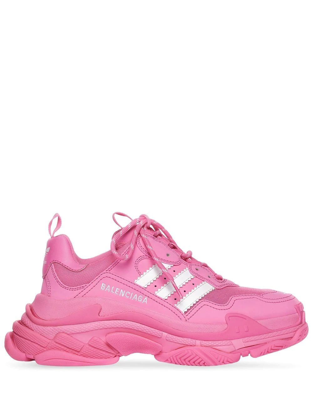 Balenciaga and adidas have united for the latest collection to welcome designs reimagined with a sportswear look. The duo presented these Triple S sneakers display the signature chunky silhouette, updated here with the iconic 3-Stripes logo along the sides.