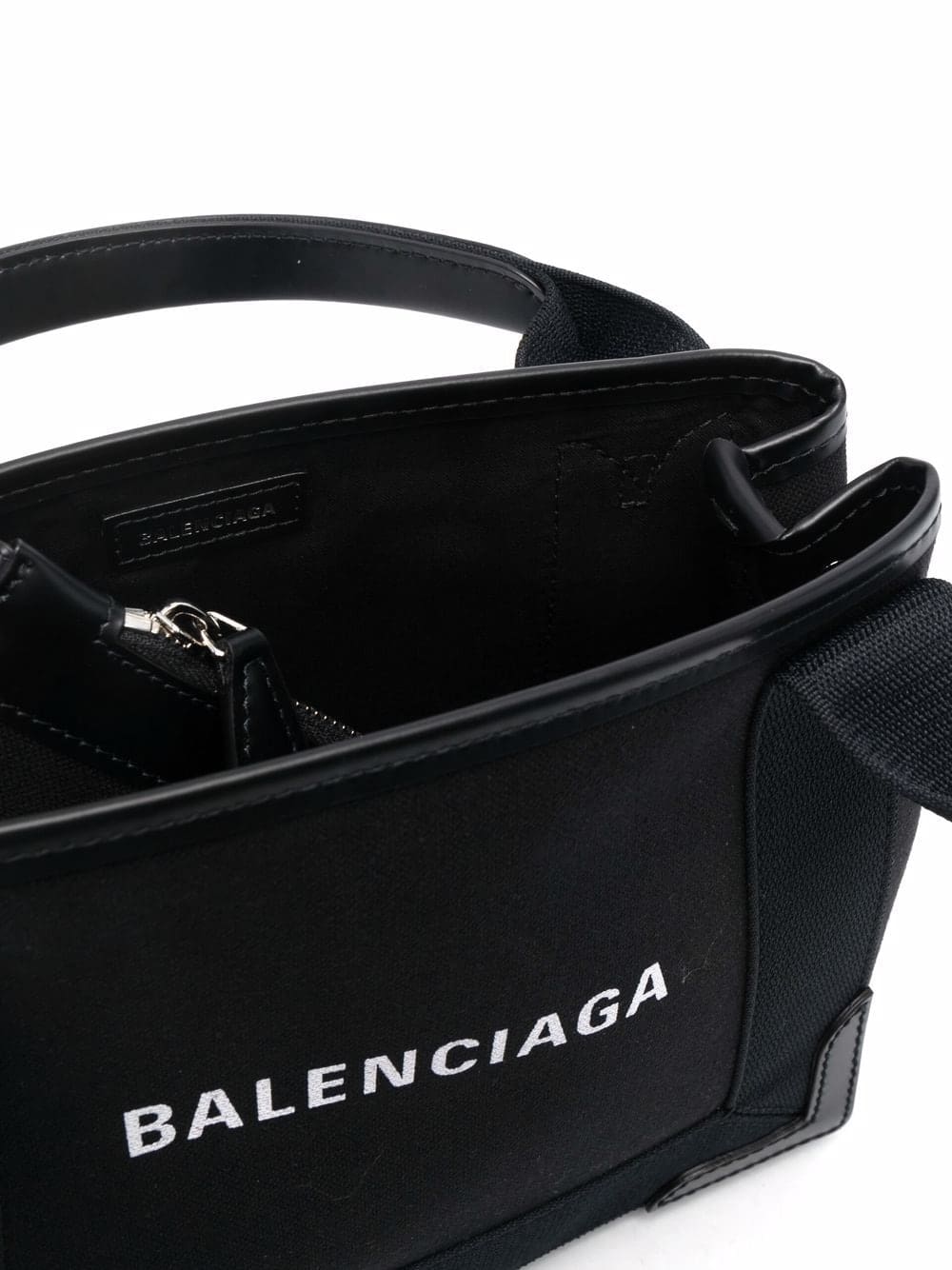 Find the perfect daily companion in this XS Cabas tote bag from Balenciaga. Made from cotton canvas and detailed with leather trims, this small-scale accessory promises to keep your essentials safe and sounds.