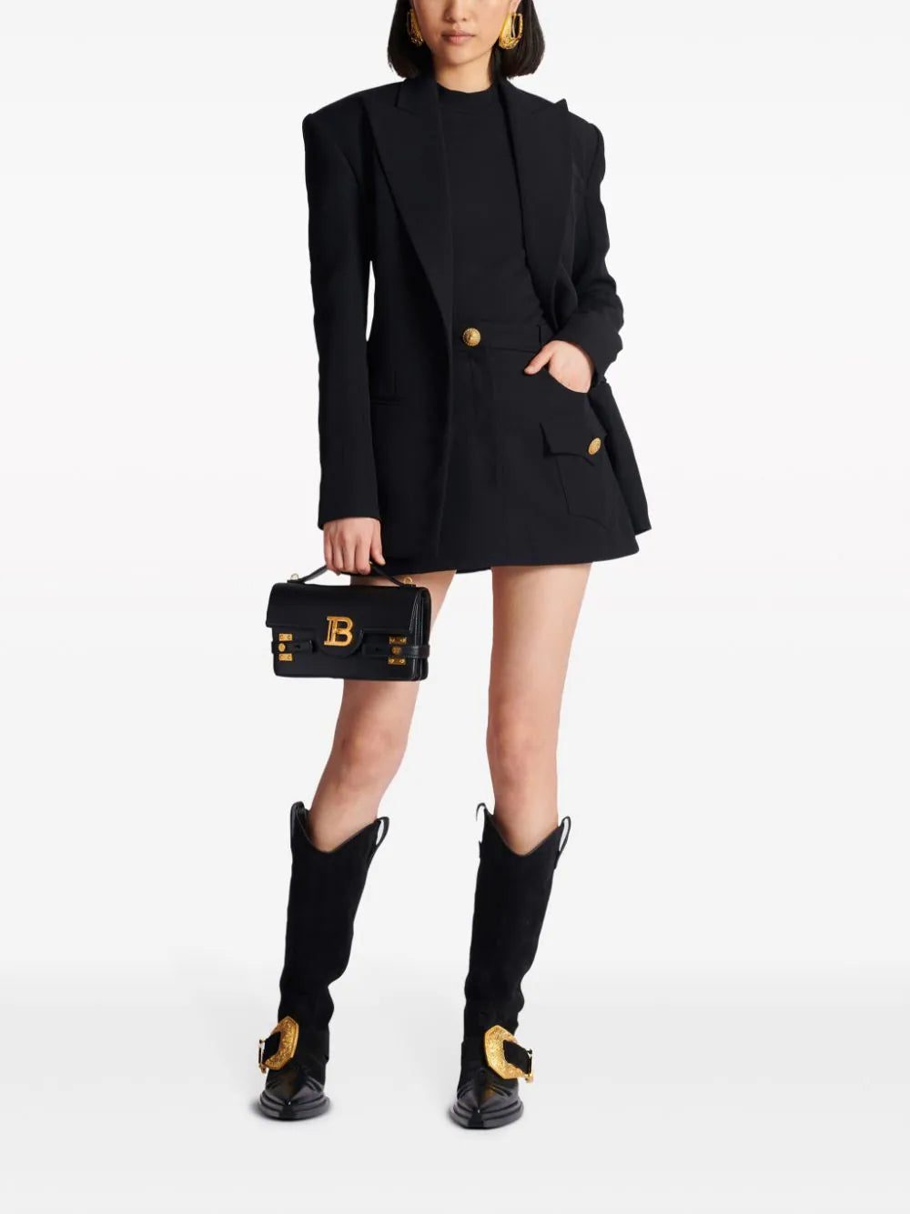 • embossed gold-tone buttons
