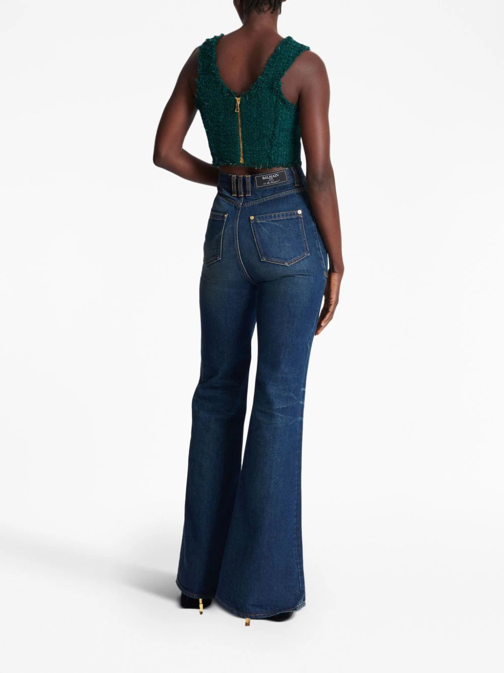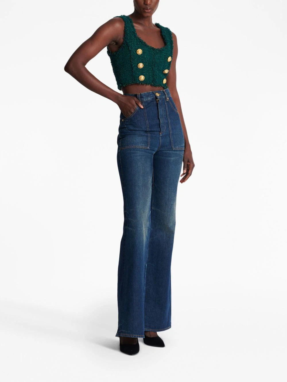 Balmain 6-Buttons tweed cropped top