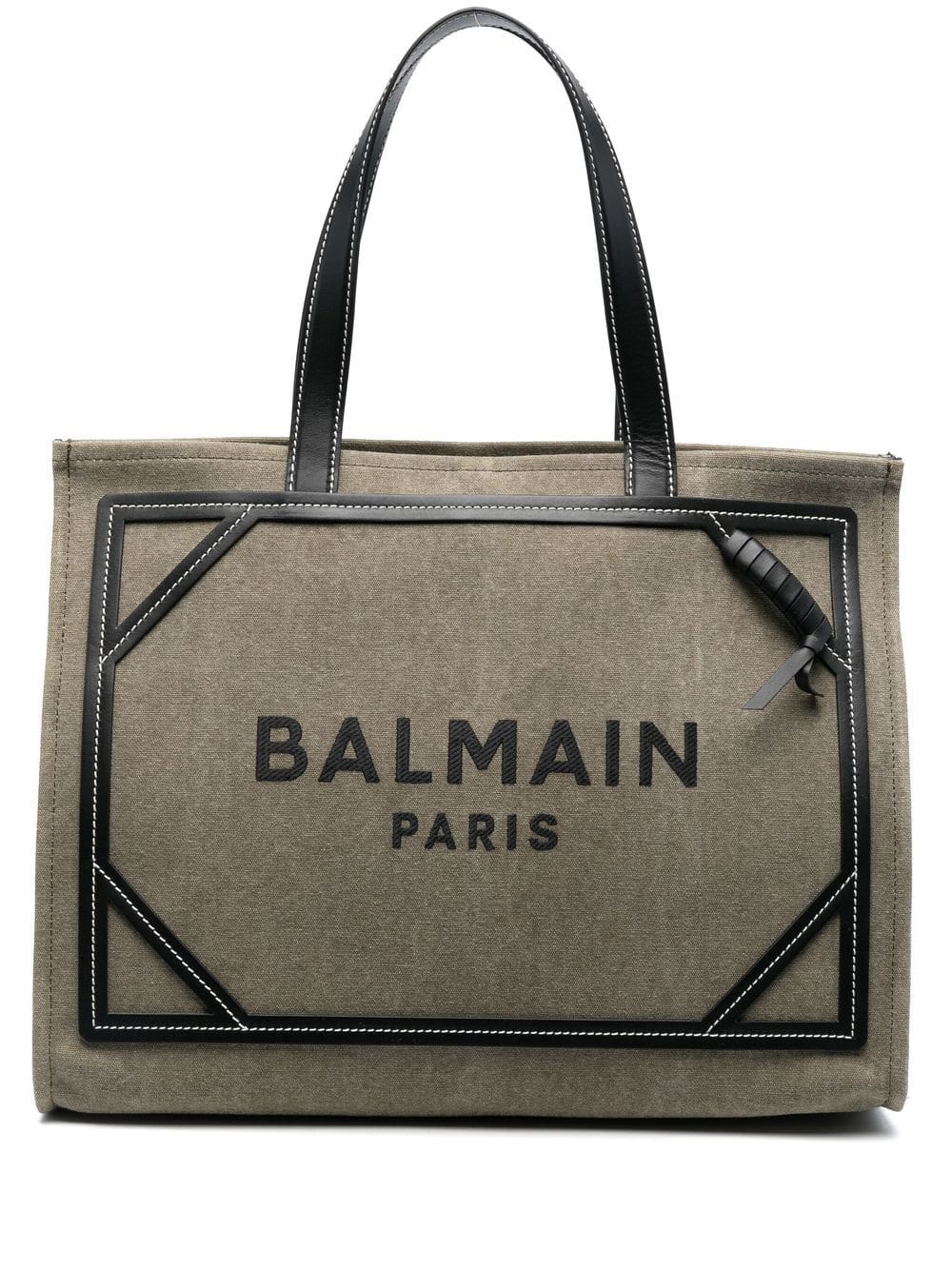 Crafted from khaki-hued canvas and framed by leather trims detailed with contrast stitching, this B-Army tote reflects Balmain's intricate workmanship with an instantly distinctive design. Branded embroidery is stamped to the front for an unmistakable finish.