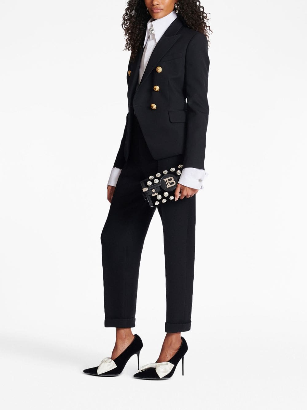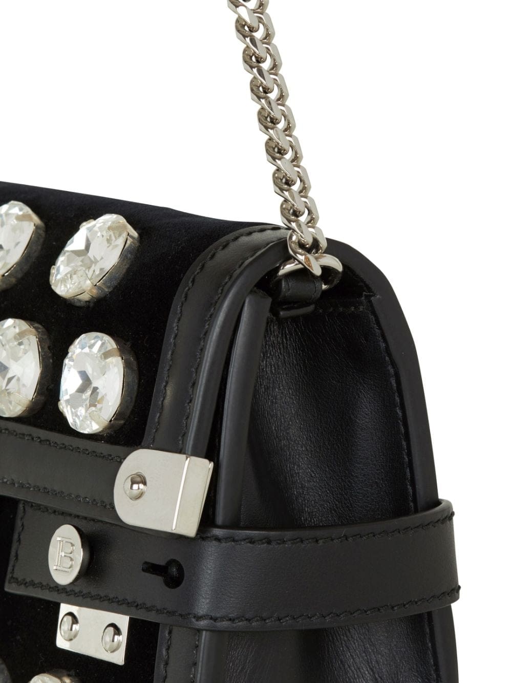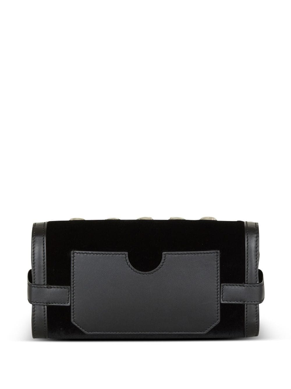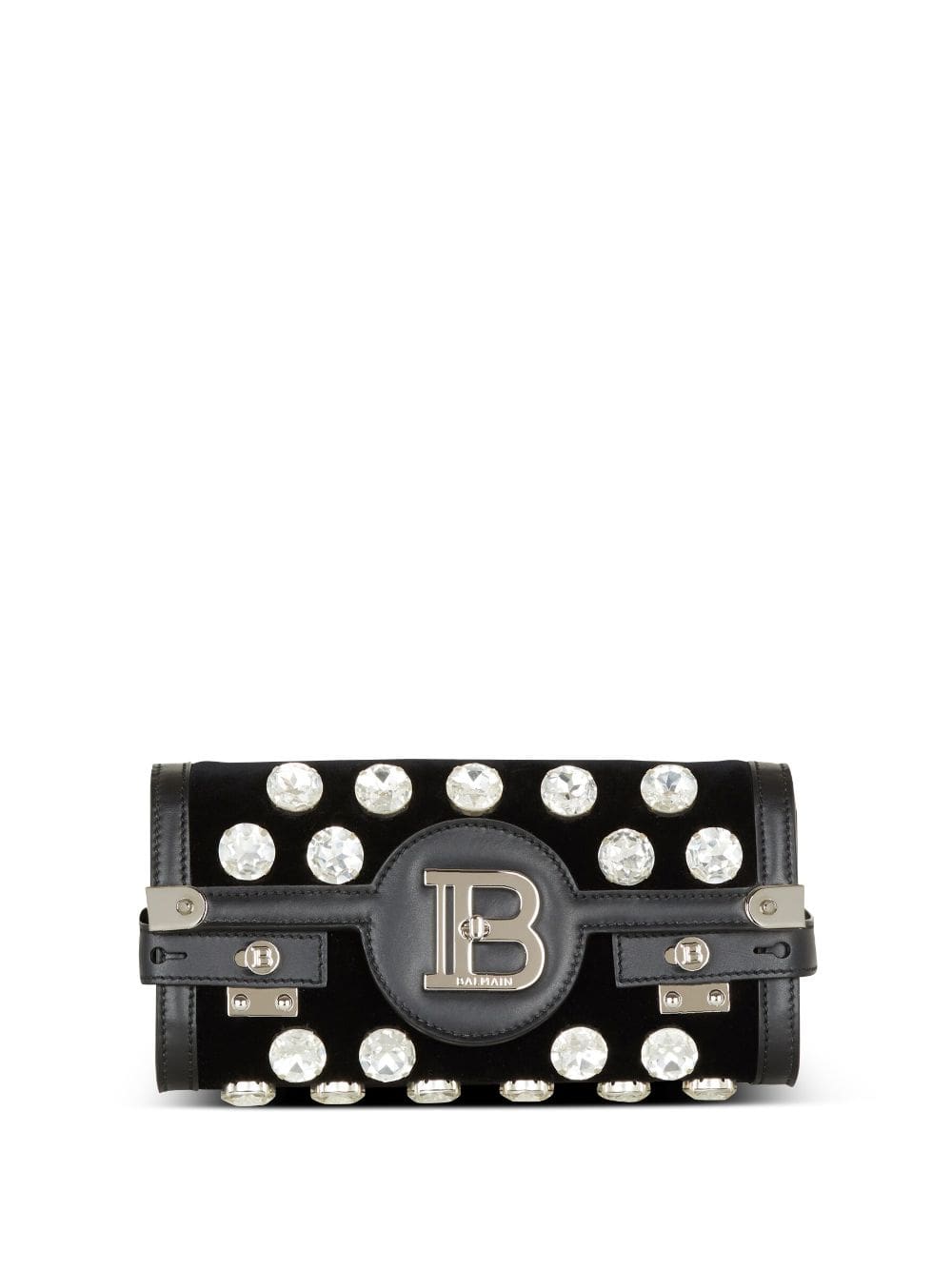 Demonstrating creative director Olivier Rousteing’s youthful yet rebellious aesthetic, this B-Buzz 23 clutch bag is awash with dazzling embellishments. Familiar thanks to its signature B logo plaque, the velvet accessory is illuminated with large rounded crystals.