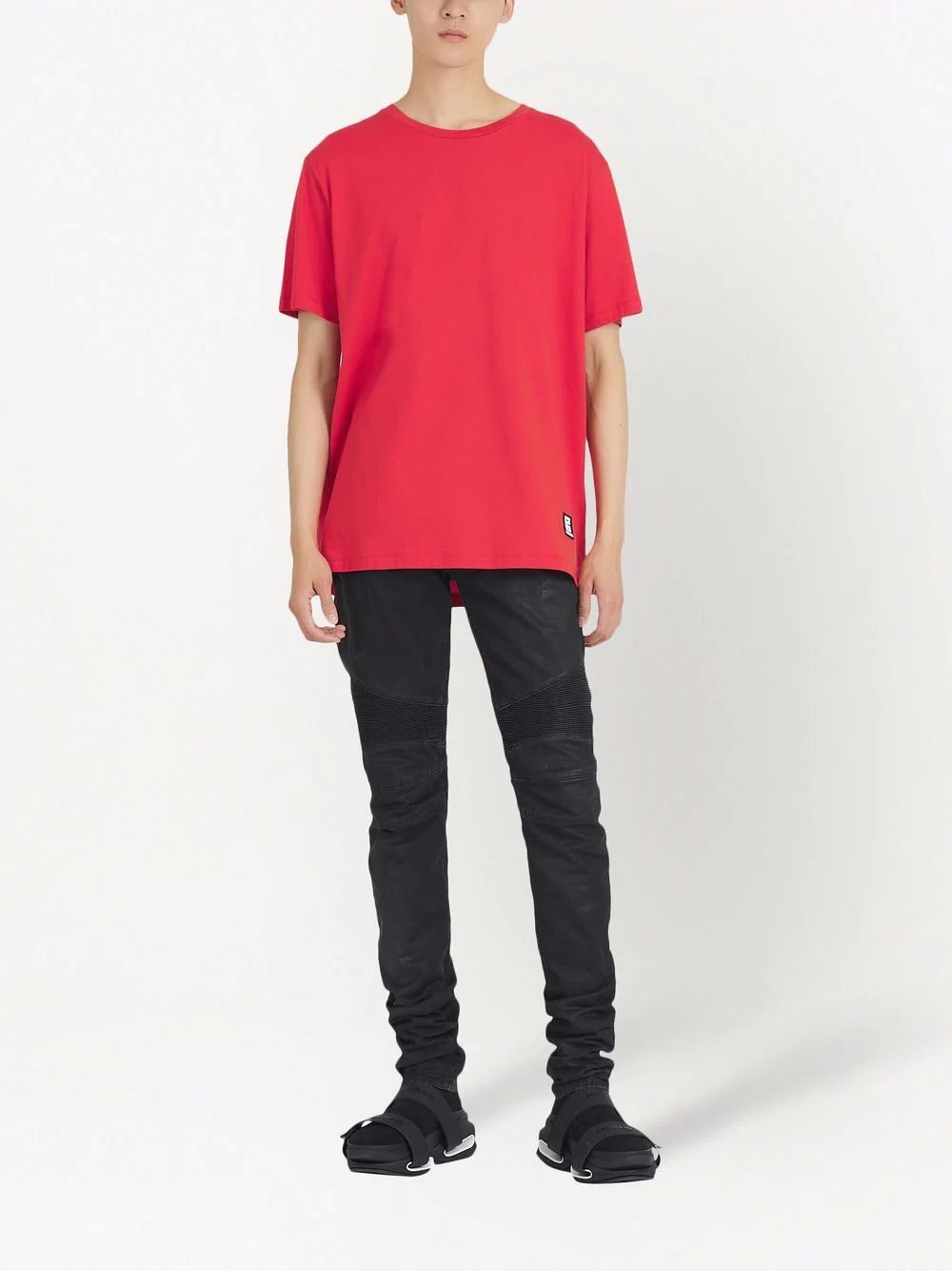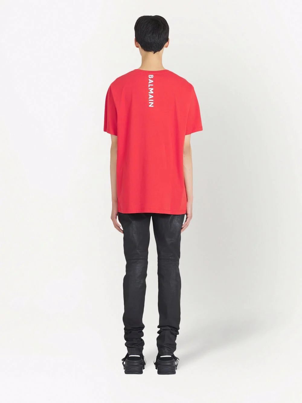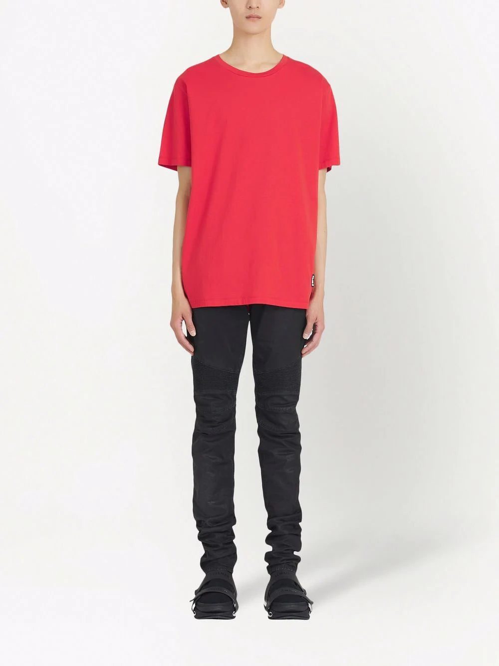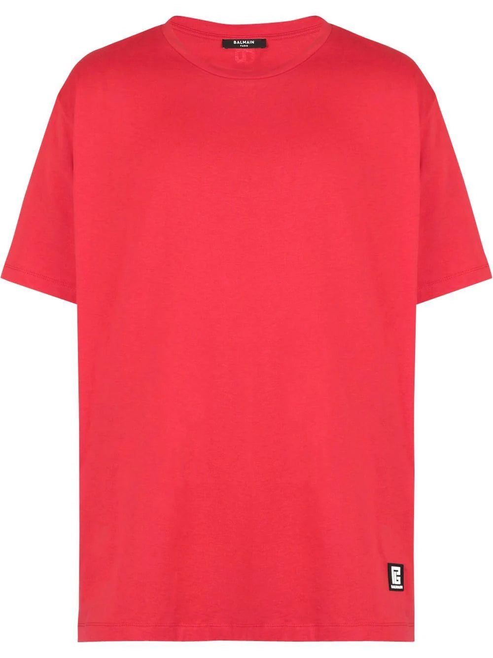 Discreetly adding branded details to this red cotton T-shirt, Balmain's logo can be found on the back of this relaxed cut piece and in the shape of a square patch on the side.