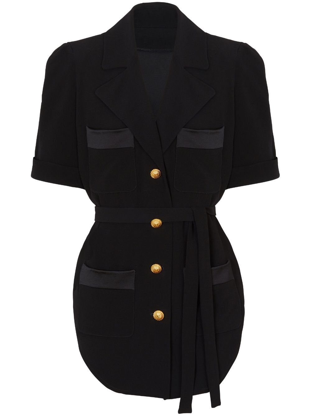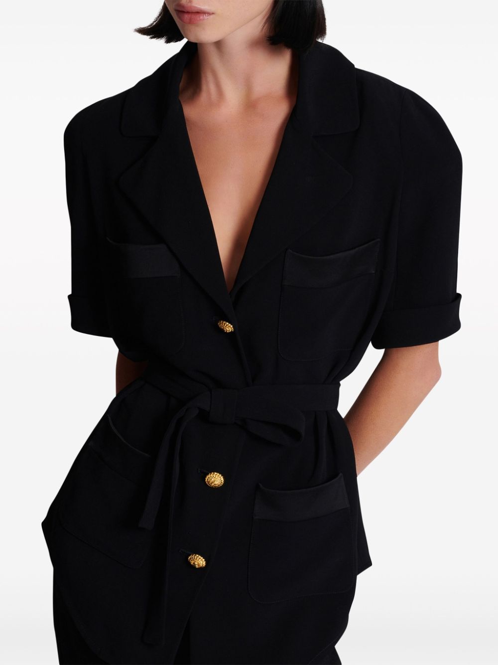 belted crepe short-sleeve shirt