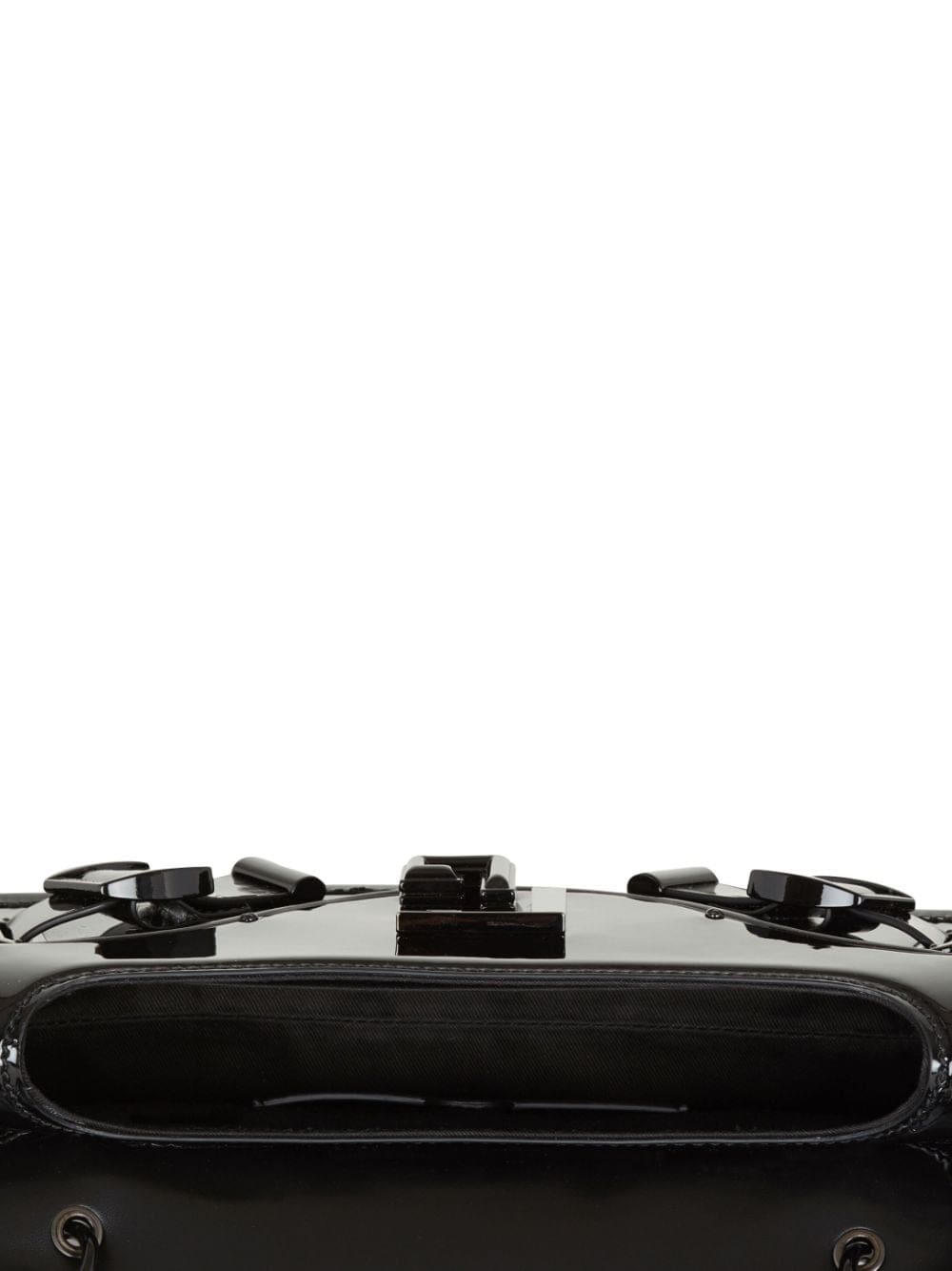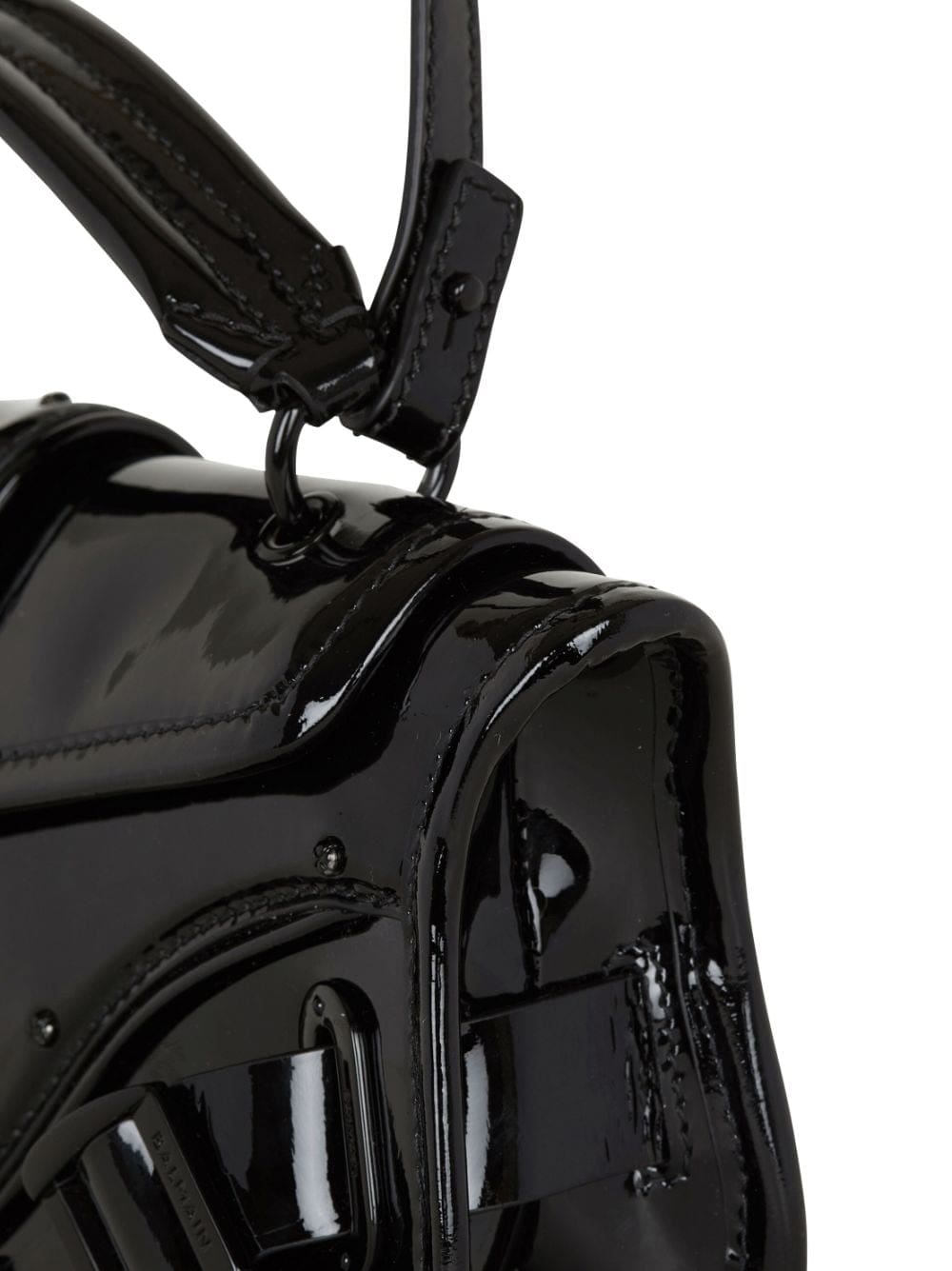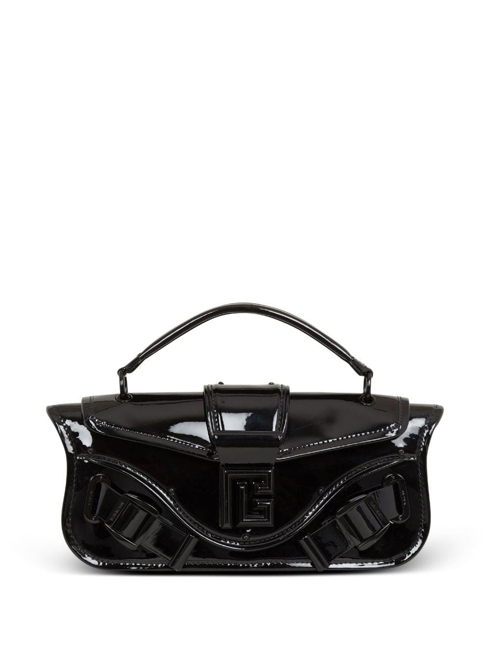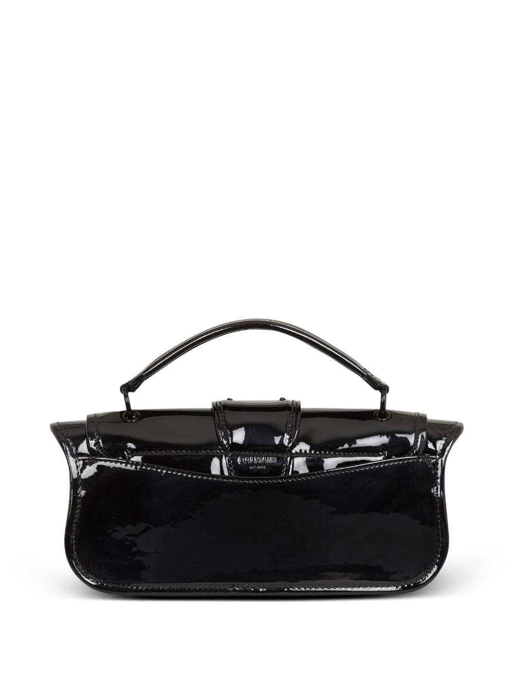 Balmain’s Blaze shoulder bag is shaped to a distinctive curved silhouette that echoes the brand’s signature 6-button jacket. This iteration is crafted from black leather with a bold patent finish and tonal hardware.