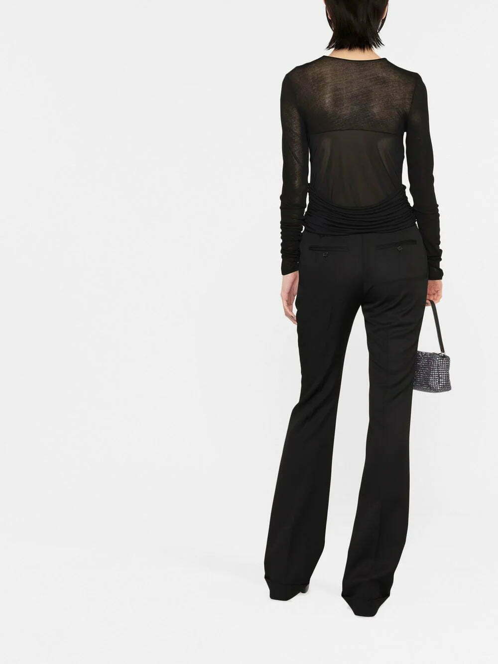 draped-panel detail top from Balmain featuring draped design, jet black, round neck, long sleeves and straight hem.