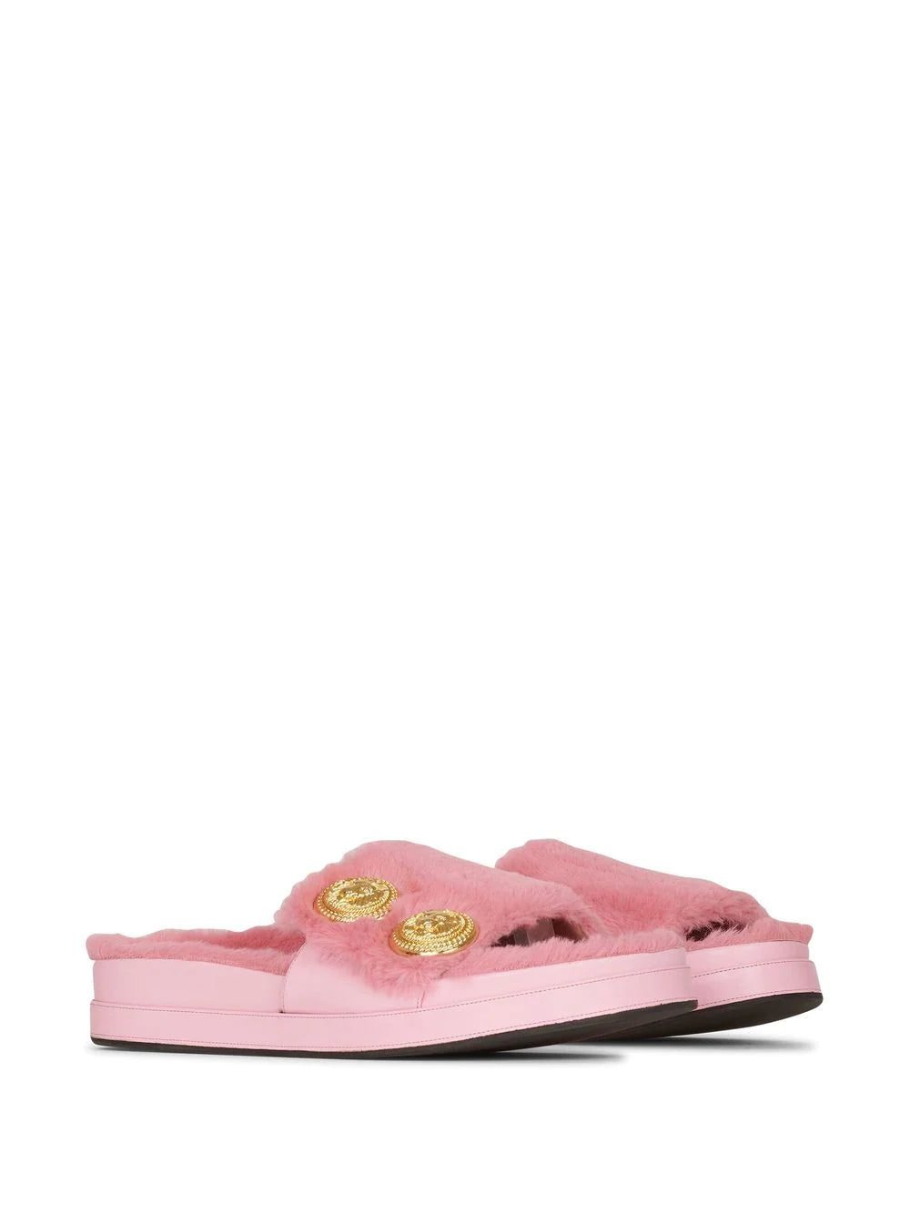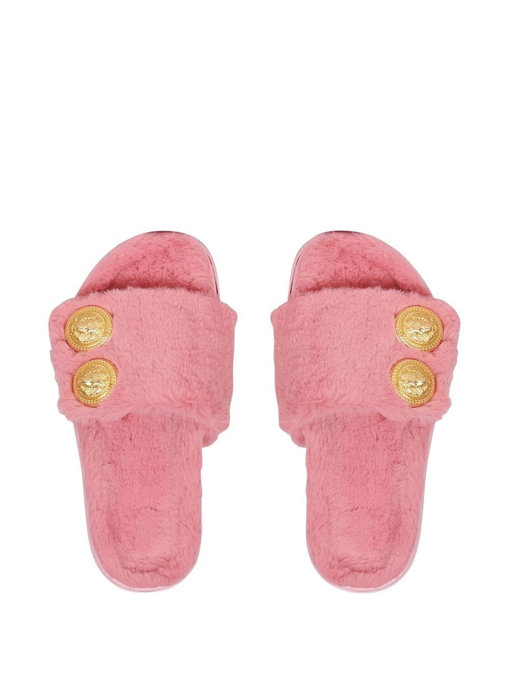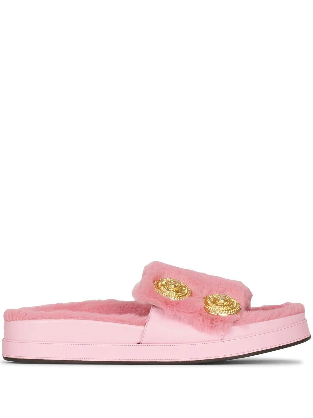 Balmain puts a twist on classic slides with this cheerful pink pair. Boasting a faux-fur design, they are finished with gold-tone buttons for a lively contrast.