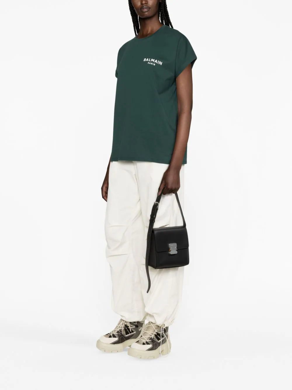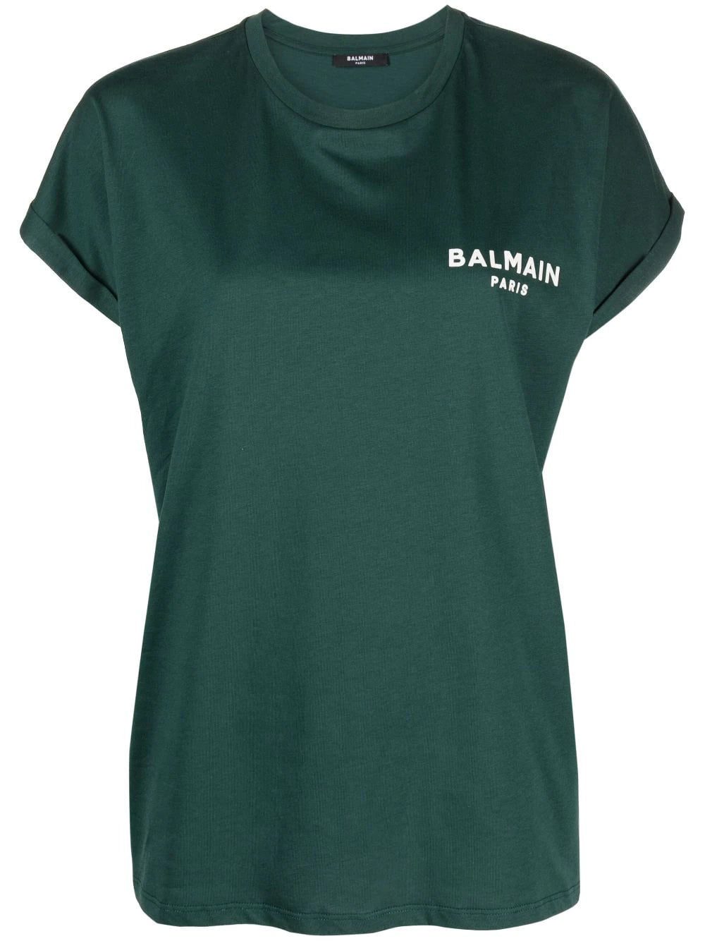 Balmain elevates a laid-back silhouette with bold branding in this dark green cotton T-shirt. It's cut for a loose fit and decorated with a contrasting white flocked logo at the chest.