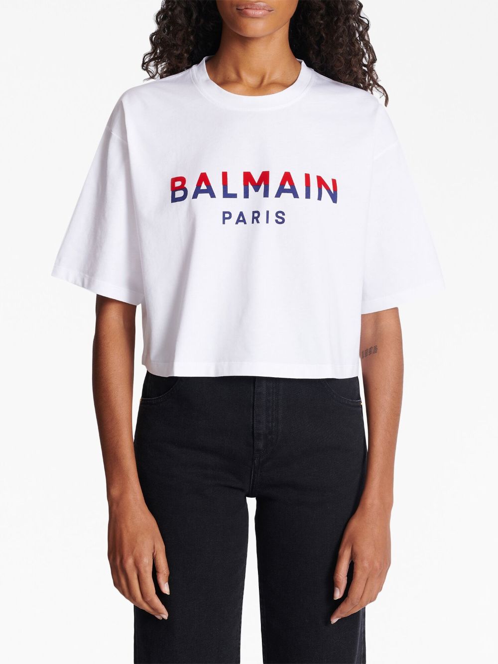 flocked-logo cropped organic-cotton T-shirt