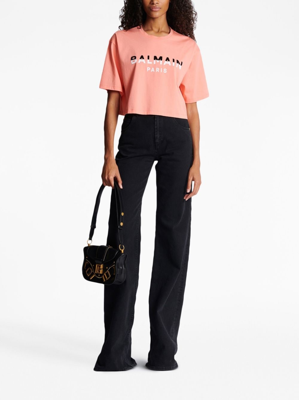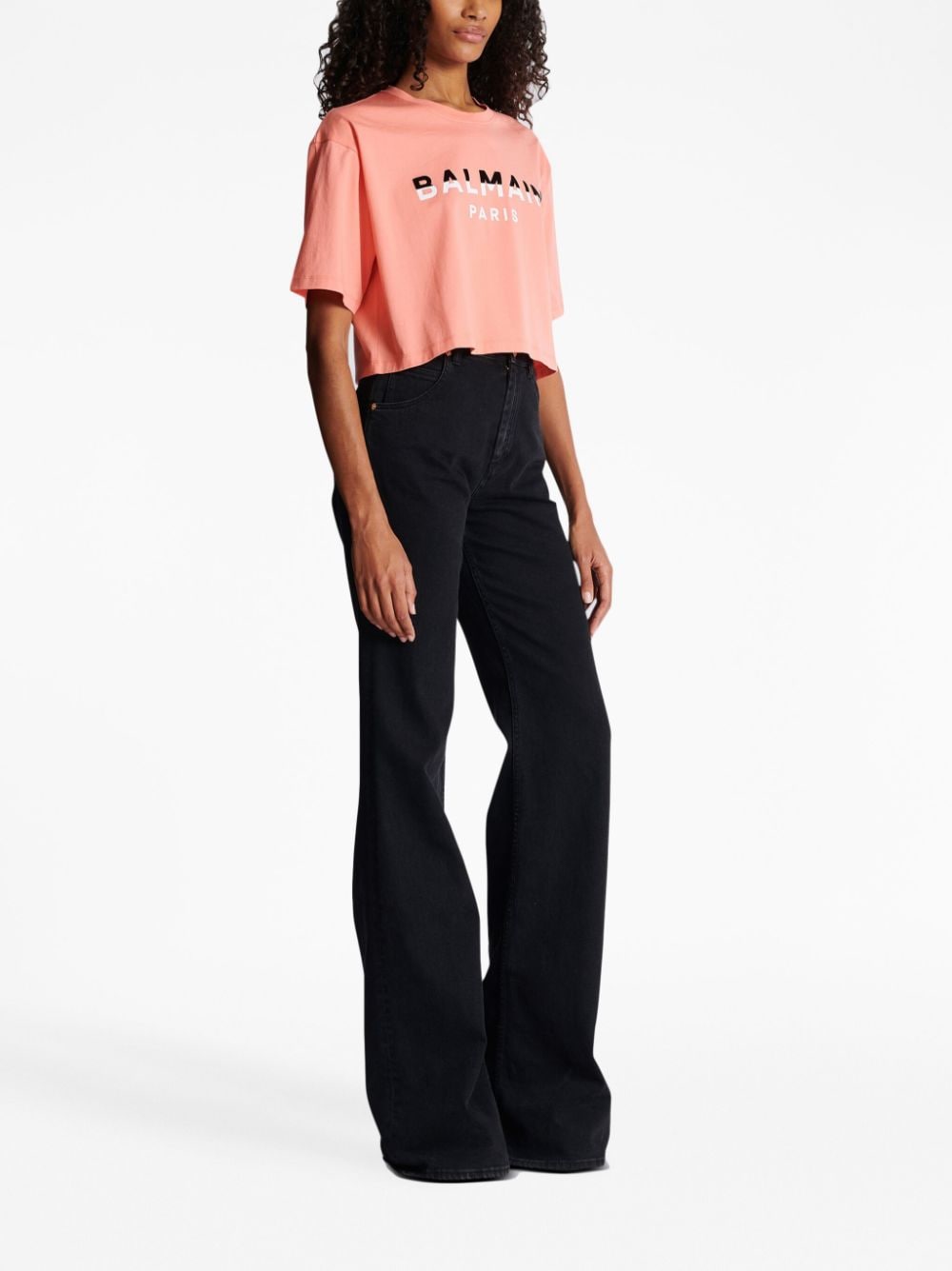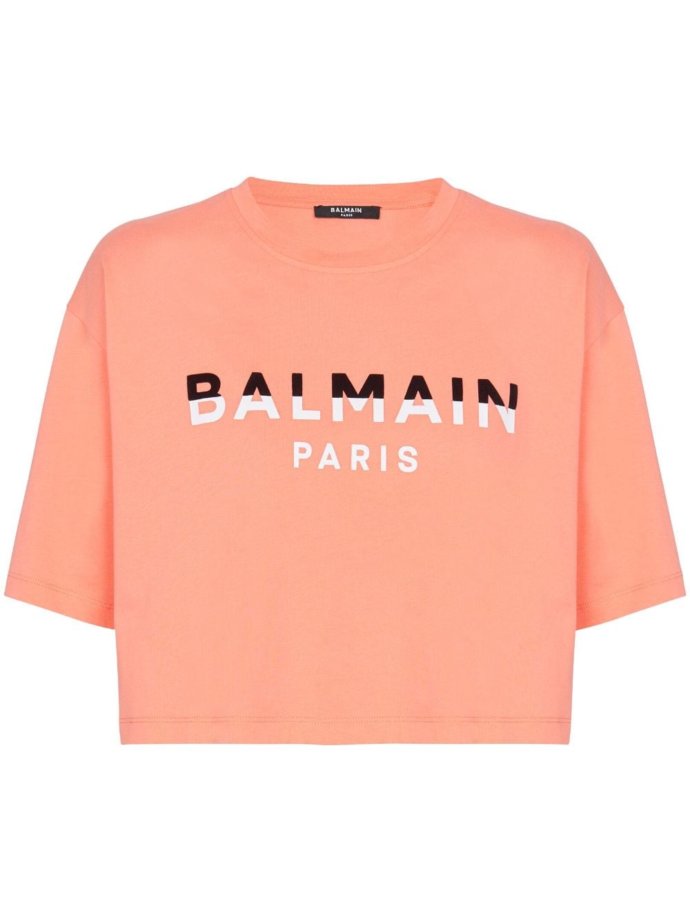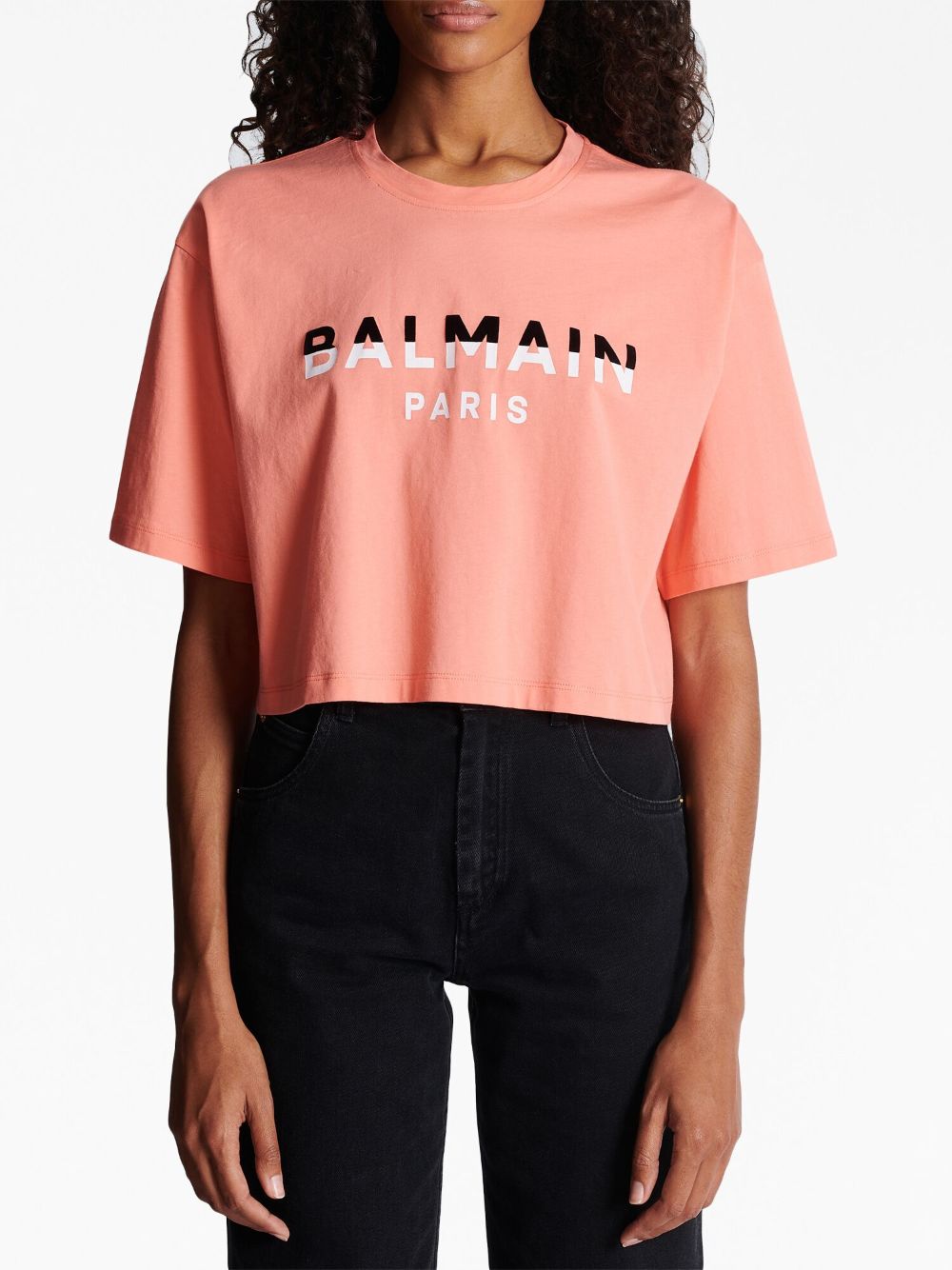 Balmain flocked-logo cropped T-shirt