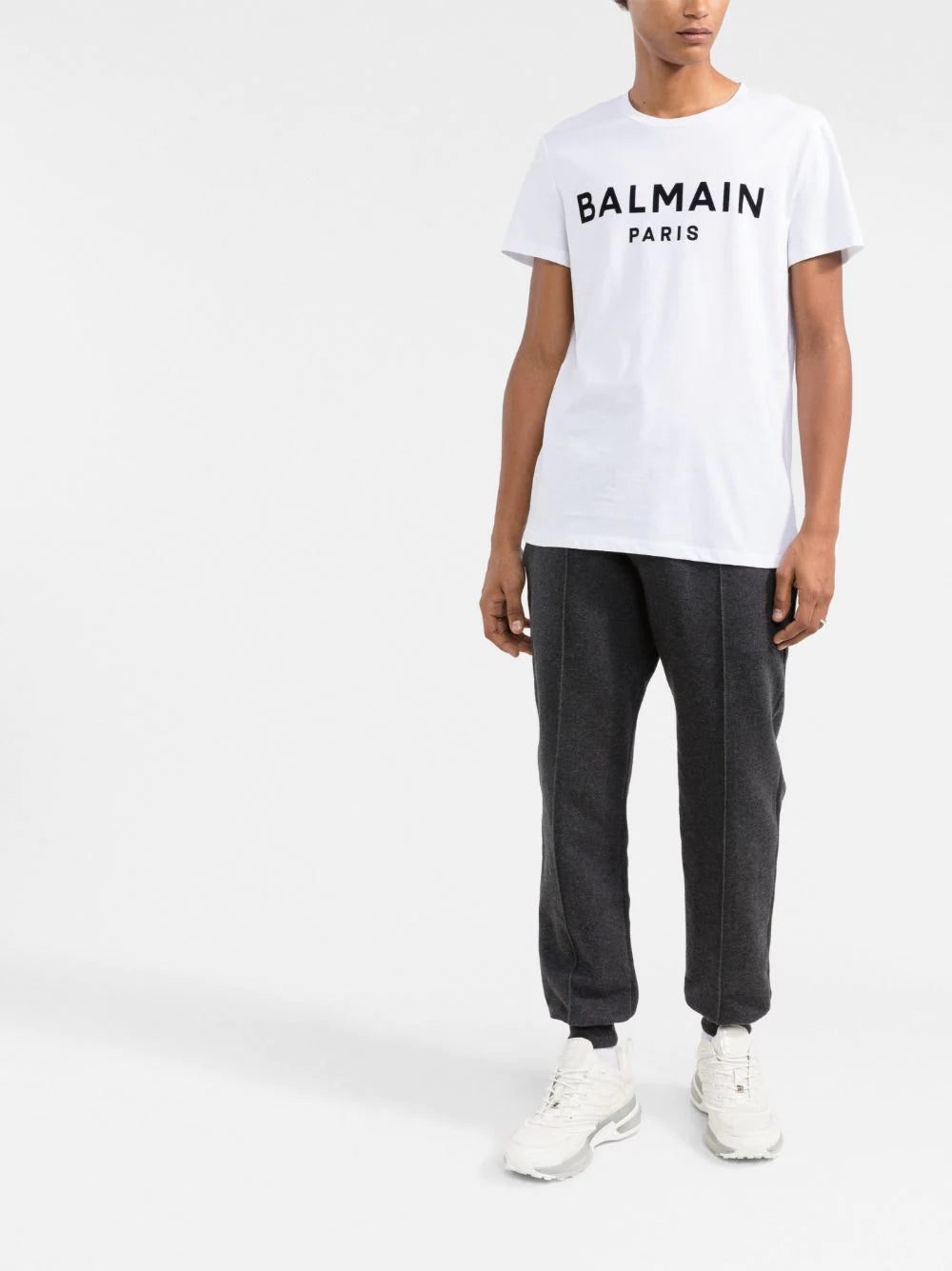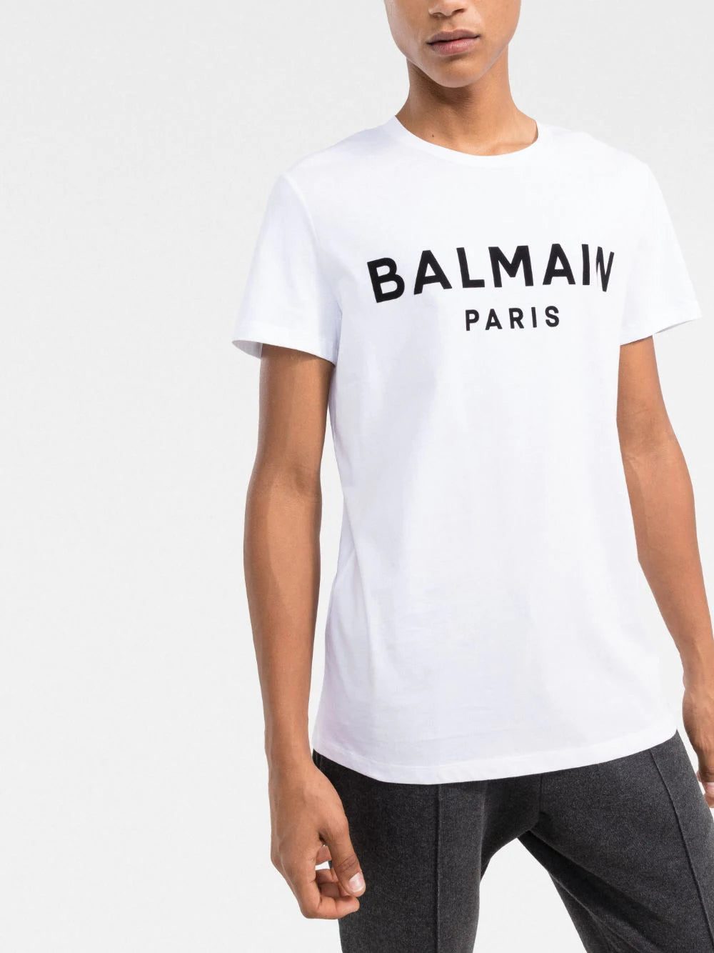 Balmain's T-shirt showcases the brand's penchant for logomania. This crew-neck iteration is emblazoned with the French house's signature at the chest in contrasting black letters that accentuate it all the more.