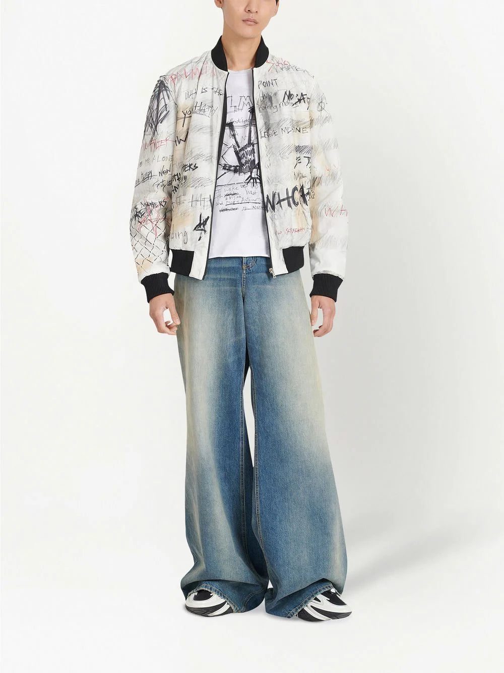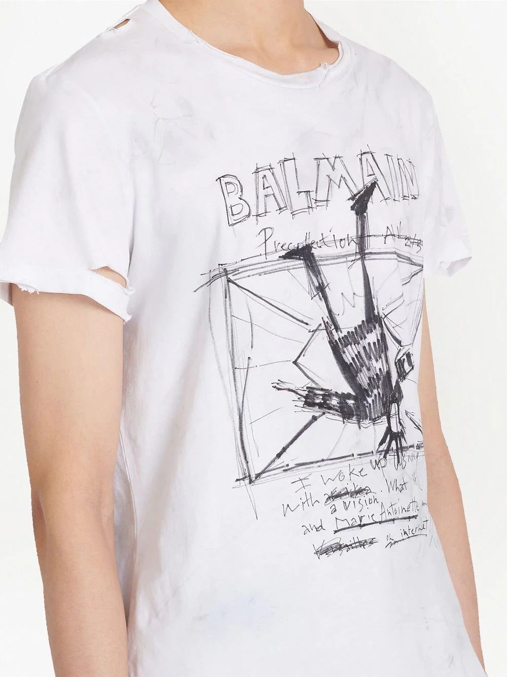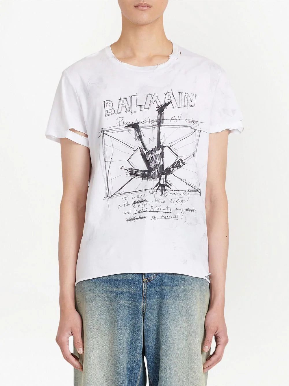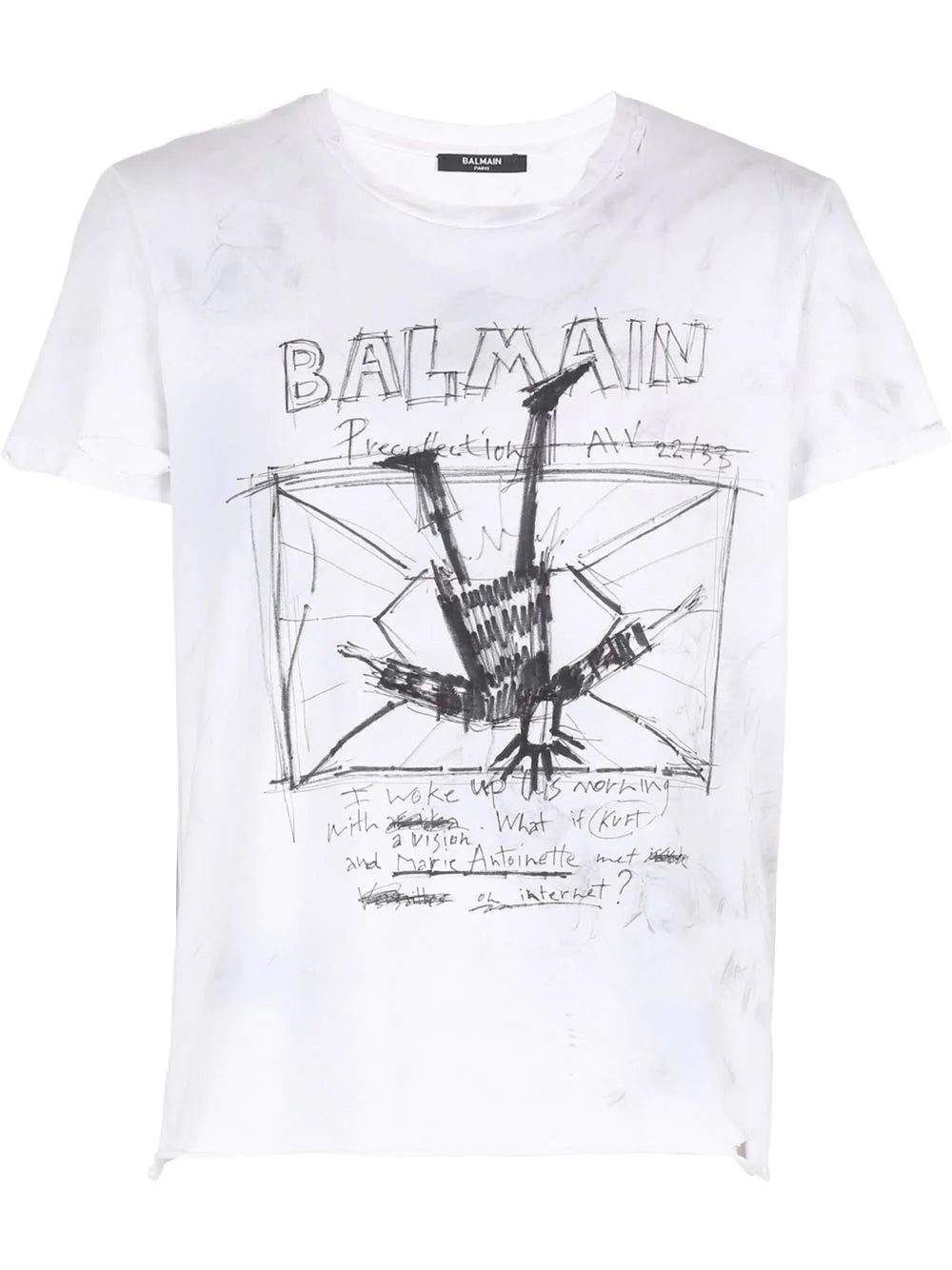 White/grey cotton graphic-print cotton T-shirt from Balmain featuring graphic print to the front, logo print to the front, round neck, short sleeves and straight hem. When buying this unisex item, keep in mind that it is graded in standard men's sizing..