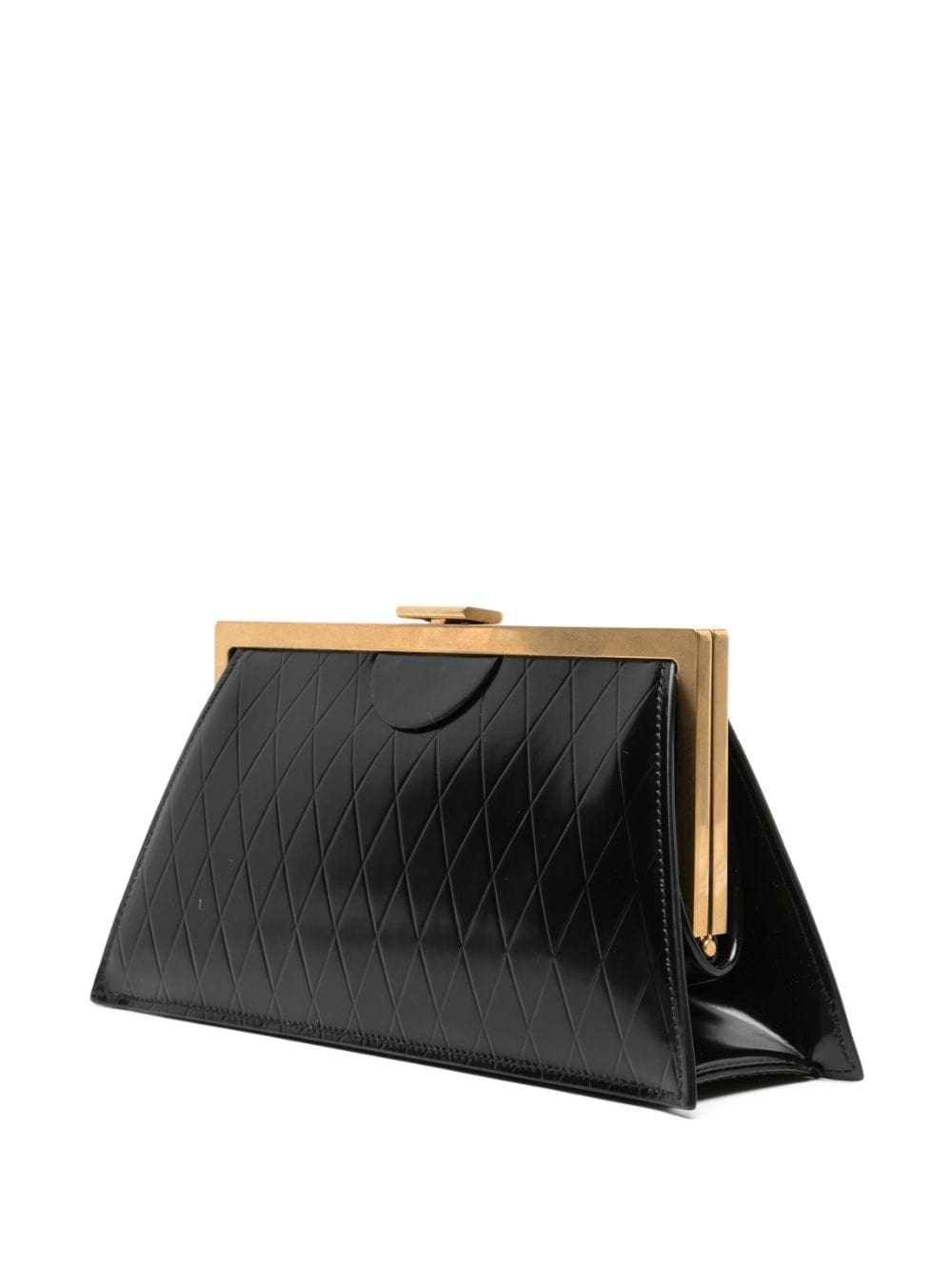 grid-embossed leather clutch bag