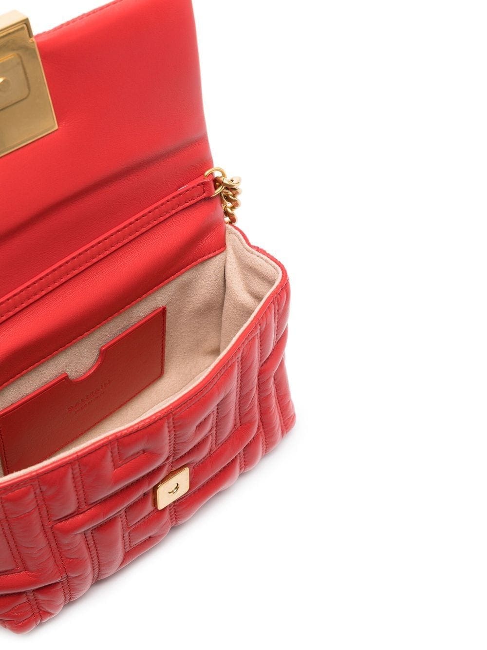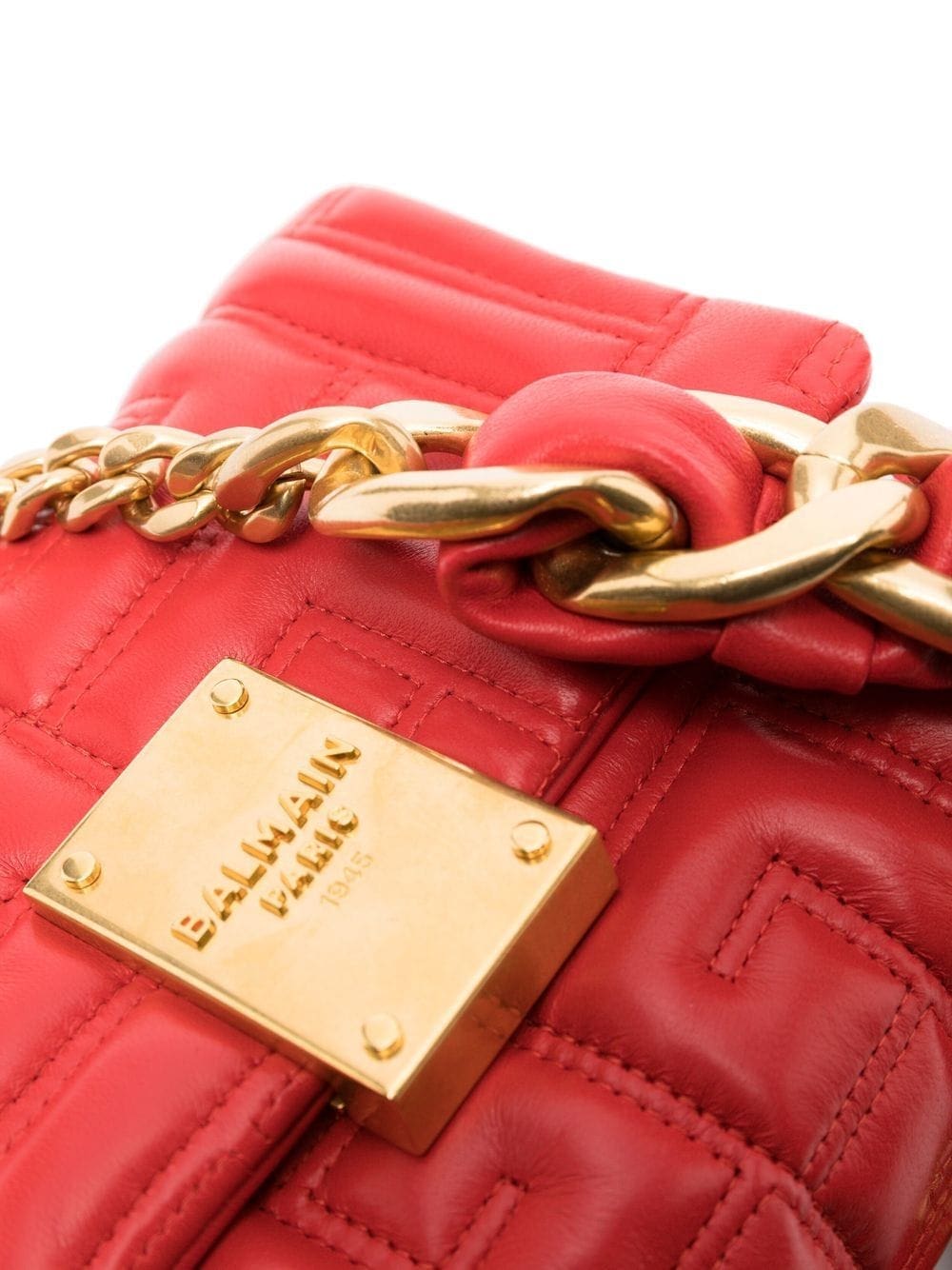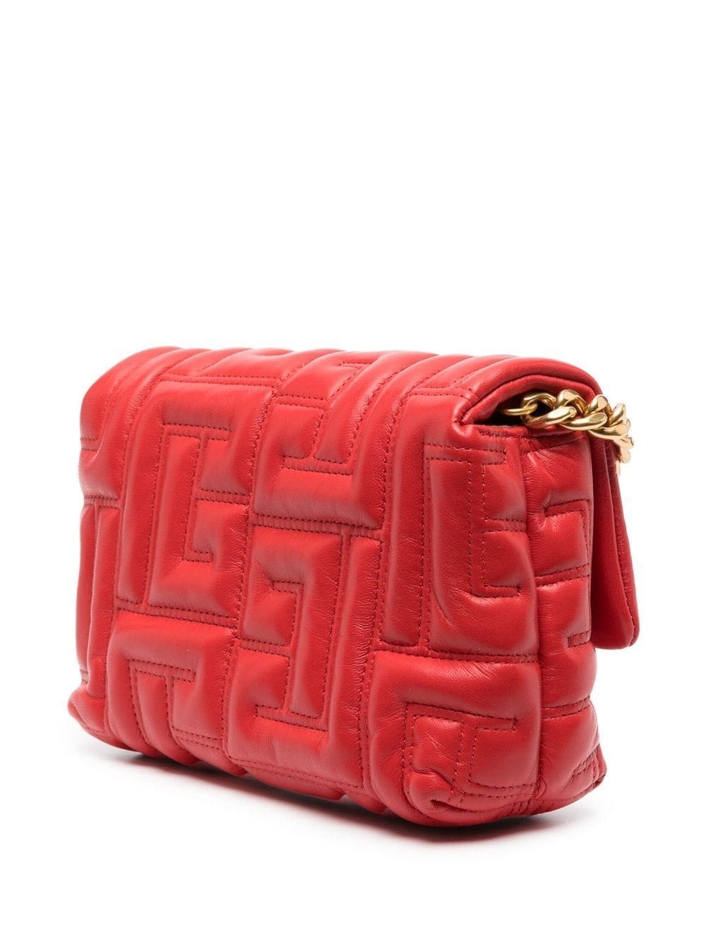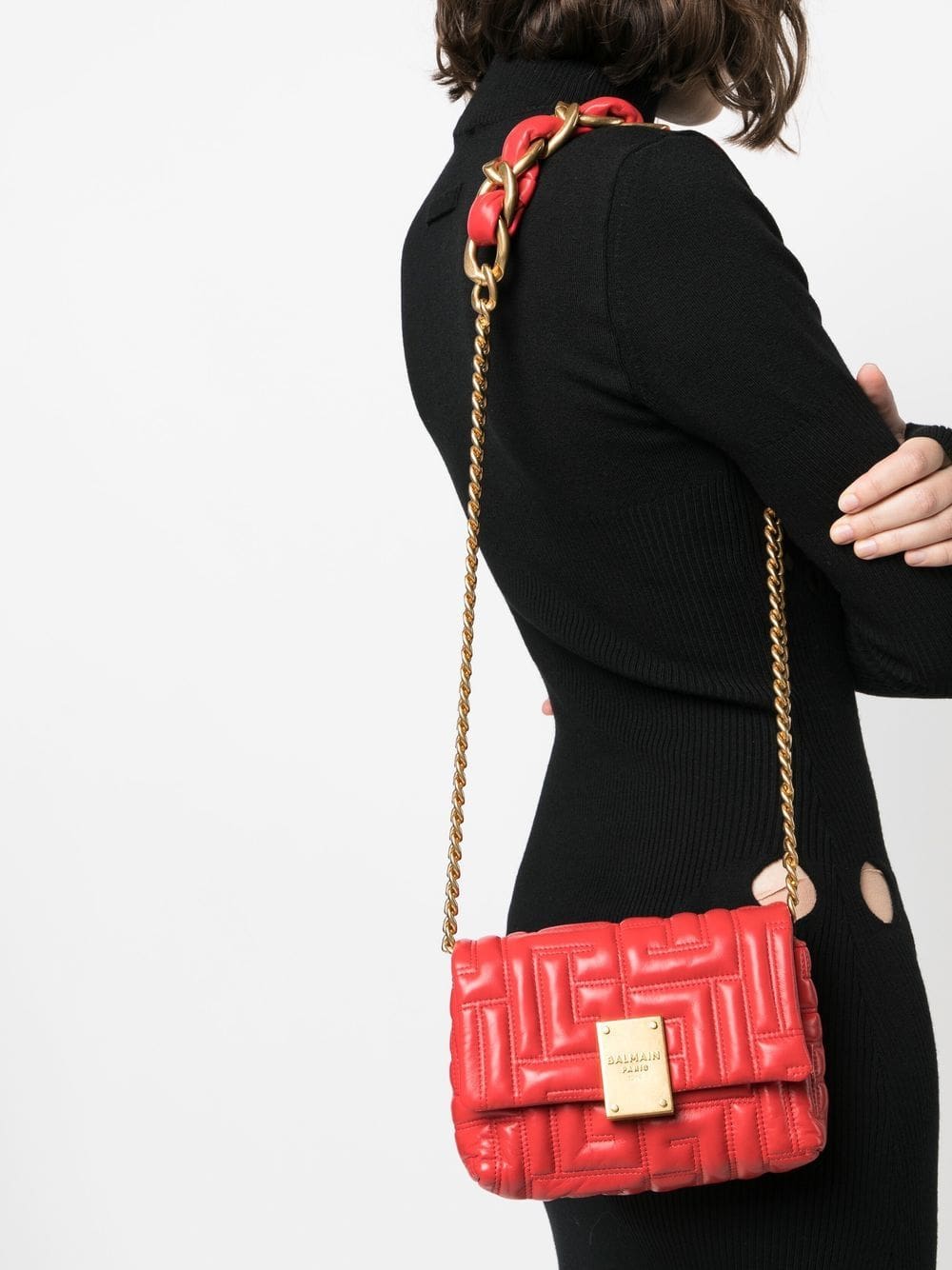 bright red lambskin trim matelassé effect gold-tone hardware embossed logo to the front leather and chain-link shoulder strap foldover top with magnetic fastening main compartment internal slip pocket