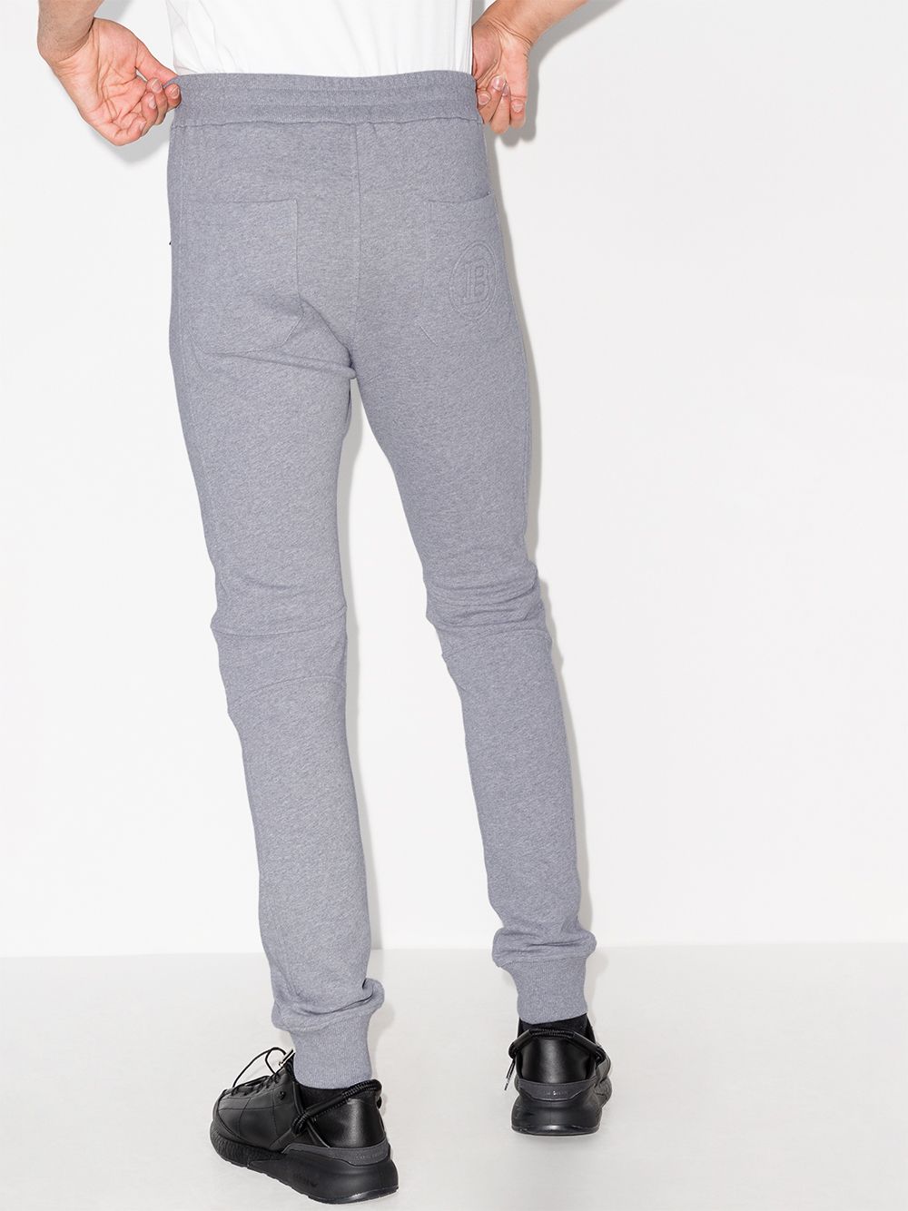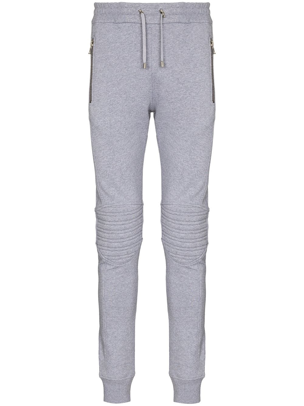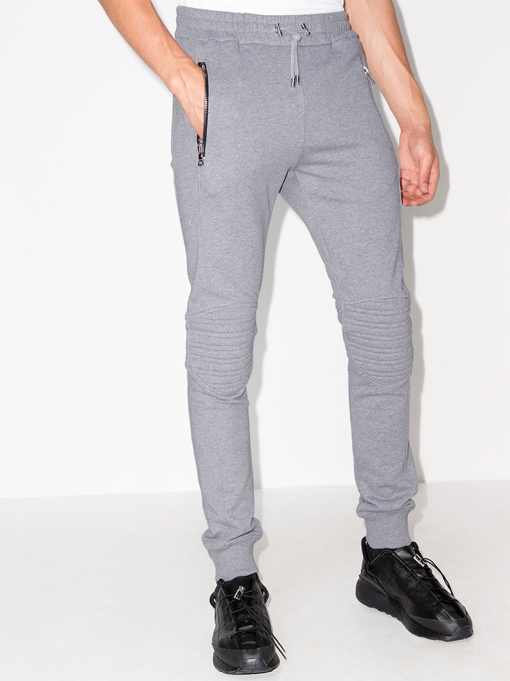 Balmain's grey track pants feature ribbed panels at each knee, drawing inspiration from traditional motorcycle gear. They're crafted from a soft cotton jersey with an elasticated drawstring waist and relaxed-cut legs that finish with tapered cuffs.