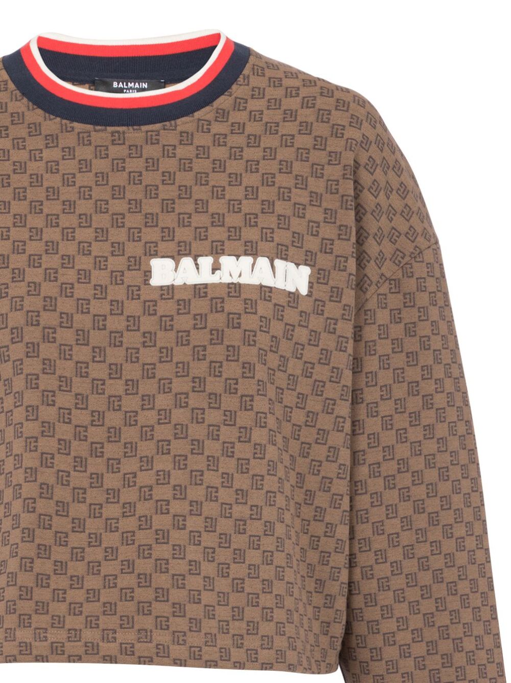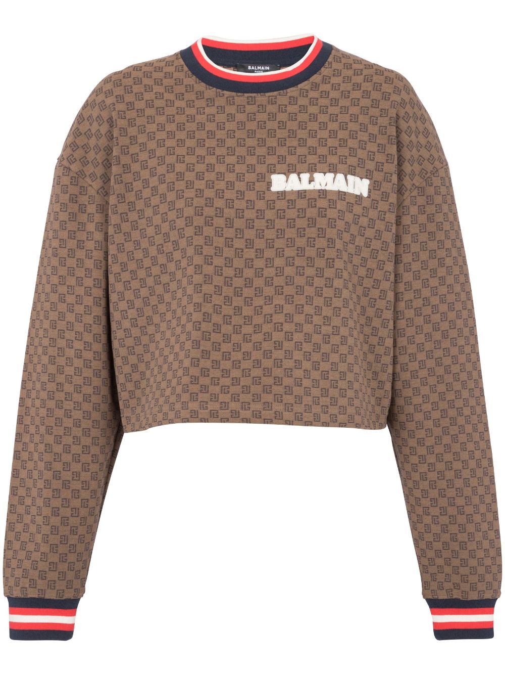 This cropped sweatshirt from Balmain captures the brand's eclectic style. Crafted from cotton with a hint of stretch, it is complete with an all-over monogram print and stripe trim.