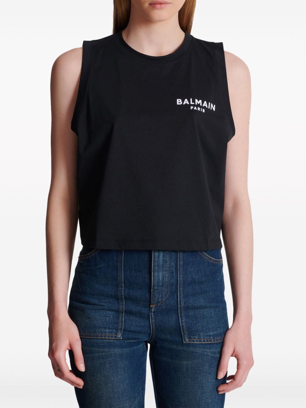 logo-flocked cotton top