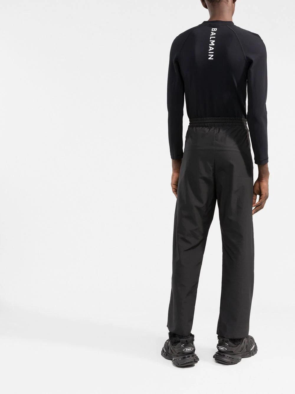 logo long-sleeve top from Balmain featuring black, logo print to the rear, crew neck and long sleeves.