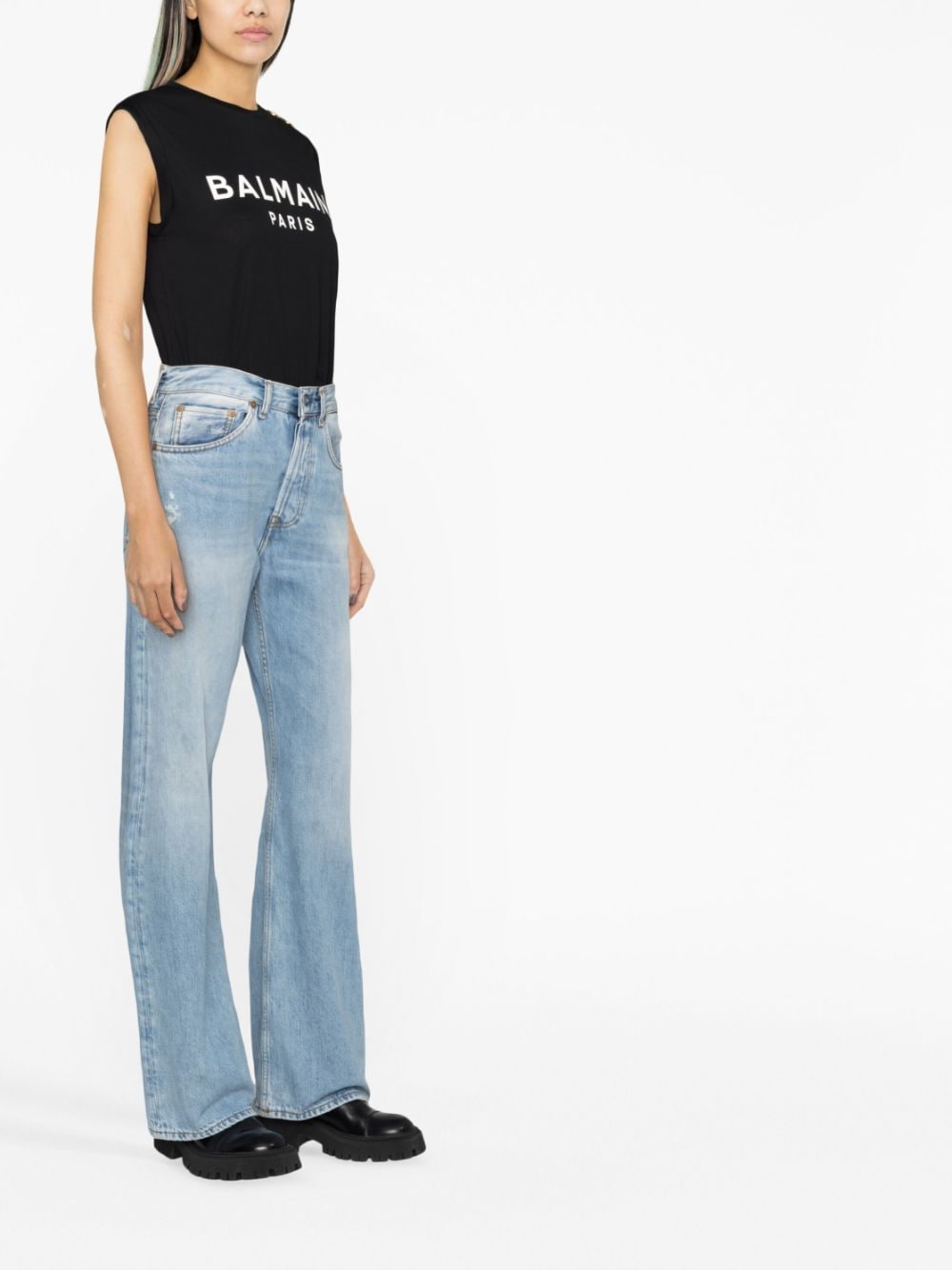 Rendered in black, this tank top from Balmain is decorated with engraved gold-tone buttons at the shoulder - a recurrent motif for the house' Made from soft cotton, it features a contrasting logo stamp at the front.