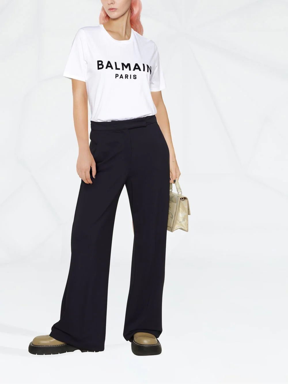 French brand Balmain elevates this classic short-sleeved T-shirt with its recognisable printed logo on the front, adding a branded completion to a casual piece.