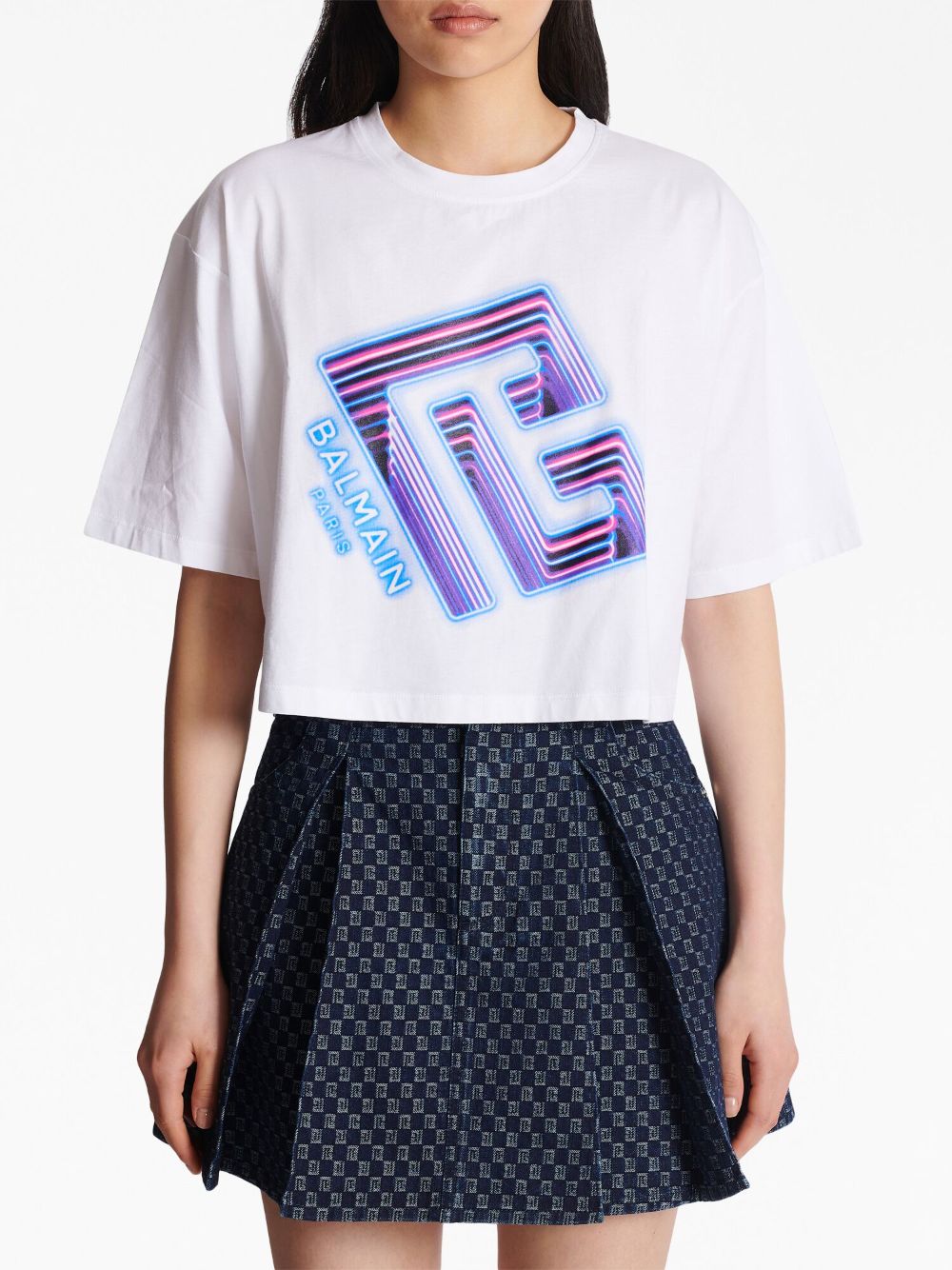 Balmain logo-print cropped T-shirt