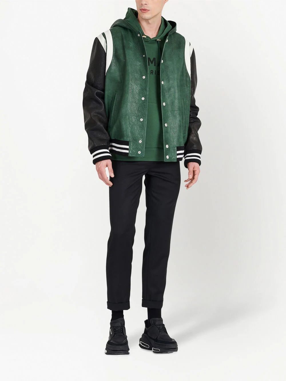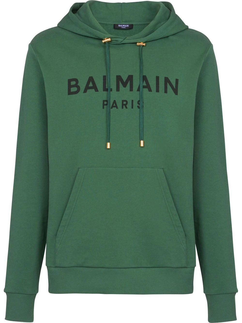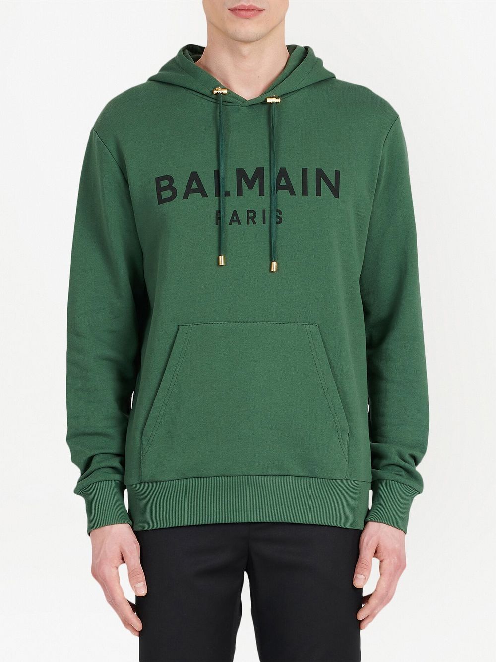 Tapping into current logomania trends, Balmain updates this green hoodie with bold block logo lettering on the chest.