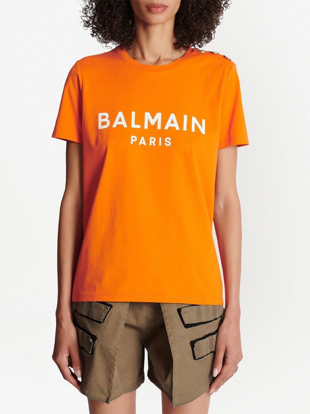 French brand Balmain elevates this classic short-sleeved T-shirt with its recognisable printed logo on the front, adding a branded completion to a casual piece.