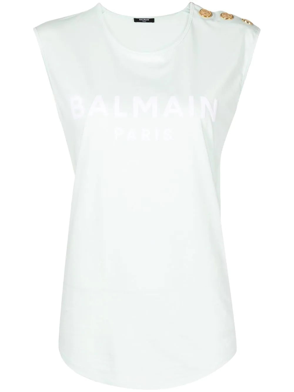 Balmain's logo-print tops are brought back season after season. This iteration boasts a sleeveless design and embossed gold-tone buttons on a single shoulder.
